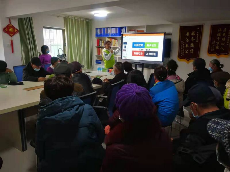 为全面普及垃圾分类知识,让垃圾分类工作取得更好实效,11月25日,金泉路社区联合甘肃源芬环境科技有限公司在瀚海明珠北区举办城市生活垃圾分类培训讲座。社区工作人员、物业负责人、辖区居民等40余人参加了此次培训会。