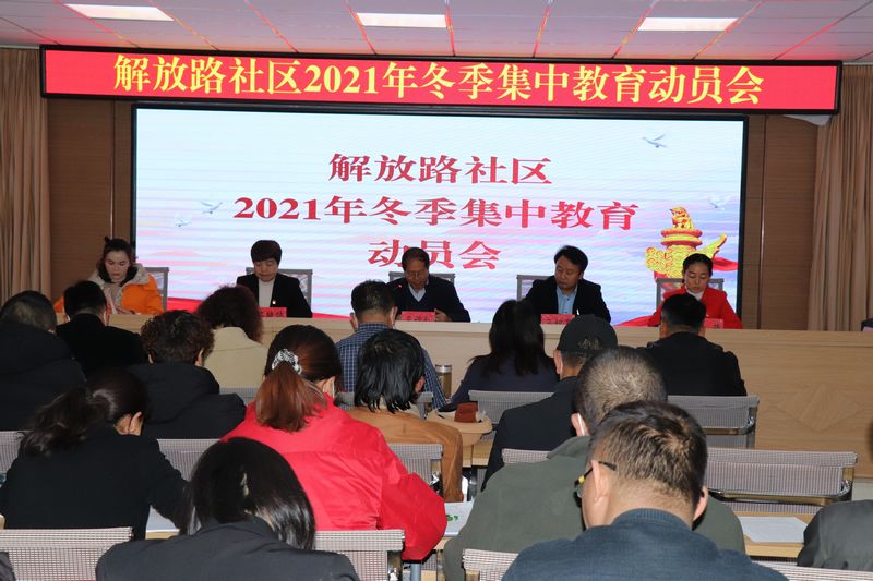 为扎实推进冬季集中教育活动,激发社区广大干部群众干事创业的热情,确保2022年各项工作起好步、开好局,根据区委和街道党工委安排,11月29日上午,解放路社区召开2021年冬季集中教育动员会议,区级包挂联系领导、社区冬季集中教育第一督导组组长和联络员、社区班子成员、社区全体党员干部及网格长、各党支部书记及部分党员代表,共计60余人参加了会议。