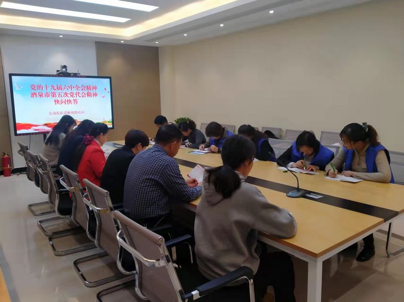 小问答“搞”起来。东南街街道解放路社区将冬季集中教育相关内容安排专人进行收集整理,并制作成了应知应会小手册分发学习,在社区党员干部中广泛开展十九届六中全会精神和市区“两会”精神“你问我答”“快问快答”活动,在轻松愉悦的小测试中推动党的会议精神入脑入心。