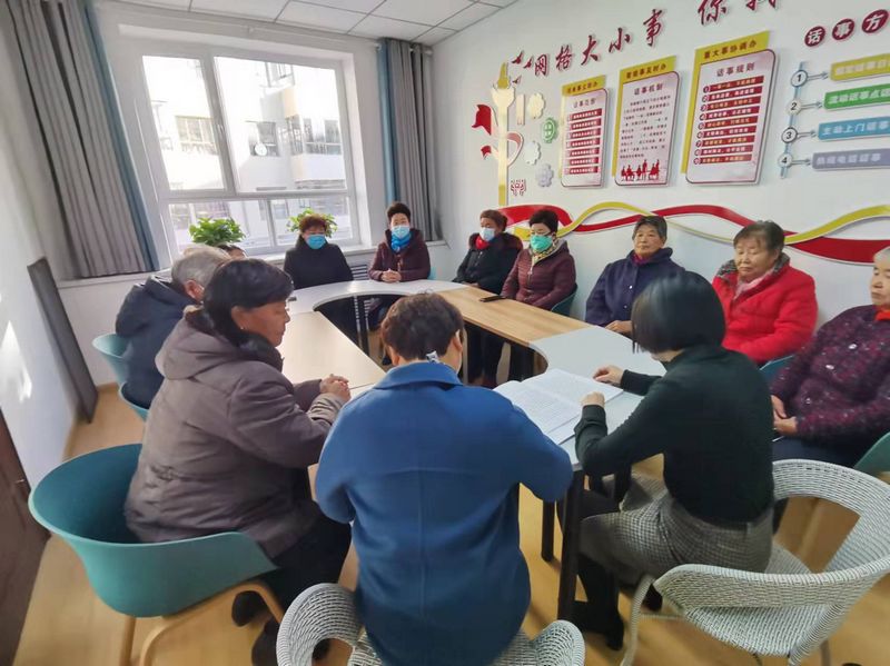 小分享“谈”起来。东南街街道祁连路社区利用居民楼院自管议事的有利时机,组织开展“十九届六中全会精神畅享交流”活动,大家在闲暇之余围坐在一起,结合各自实际分享自己对党的十九届六中全会和市区“两会”精神的感受和理解,“你一句我一句”聊的热火朝天、干劲十足。
