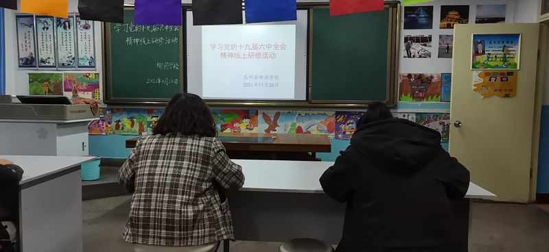 2021年11月26日早上8点,学校教导处组织全校所有道德与法治课教师,参加了“学习党的十九届六中全会精神”线上研修活动,观看了腾讯视频直播,及时把全会精神和重要内容融入到道德与法治课程中。