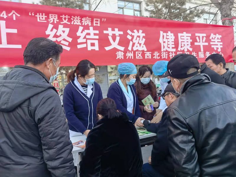 为进一步增强辖区居民群众预防艾滋病的意识,普及艾滋病基本防治知识,遏制艾滋病的流行和传播,2021年12月1日下午,东北街街道同德巷社区联合西北街卫生服务中心开展了以“生命至上 终结艾滋 健康平等”为主题的预防艾滋病宣传活动。