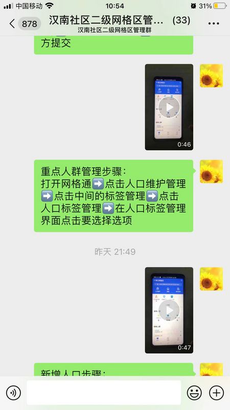 实招二利用“视频”巧学习。针对社区网格长普遍年龄大学历低,掌握智能产品有困难这一难题,汉南社区综治中心工作人员找问题想办法,将“网格通APP”中的人口管理、重点人员、新增人口、流动人口等操作步骤,录成一个一个的小视频,并配以文字操作步骤说明,将操作方法逐一进行演示。通过“小视频+小说明”的巧妙方法,使app操作一下简单明了,缩短了培训时长的同时提升了培训效果,得到网格长们的交口称赞。