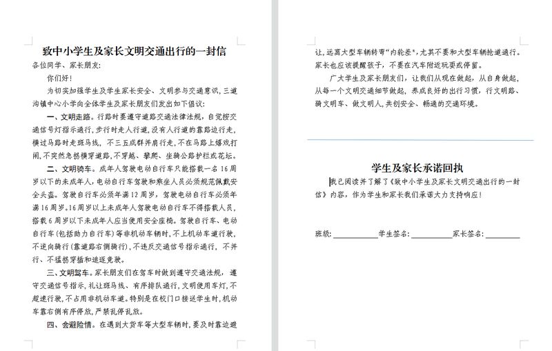 12月1日,学校向家长和同学们下发了《交通安全致家长倡议书》,形成家校社“三位一体”,号召大家共同遵守交通规则,共筑安全防线。
