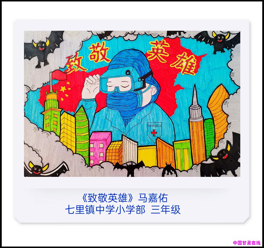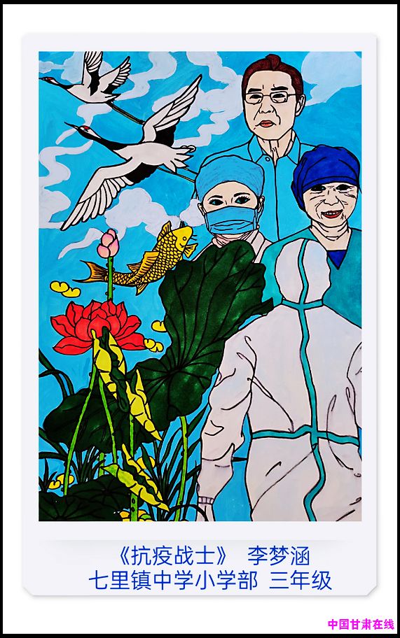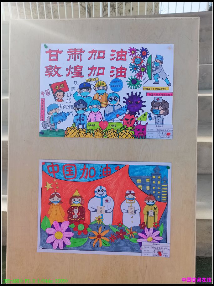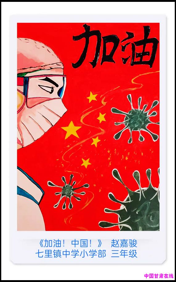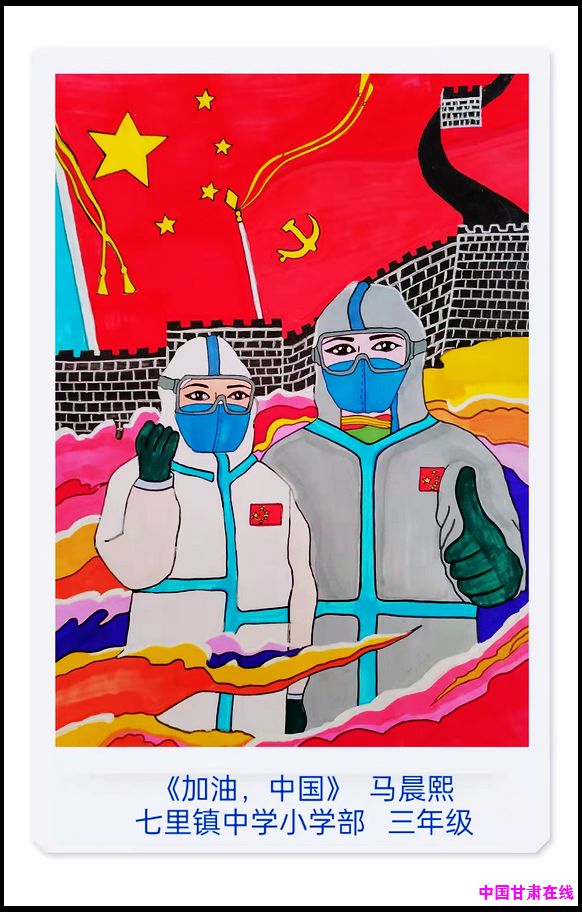 中国甘肃在线敦煌讯 疫情无情人有情。民族危难时刻,总有鲜红的党旗高高飘扬;面对生死考验总有不屈的身影冲锋在前。随着新冠疫情防控工作的不断推进,甘肃人民,乃至全国人民凝心聚力、众志成城抗击疫情,谱写了一曲曲动人的时代篇章。为了致敬“英雄”、奏响“赞歌”,鼓舞全校广大师生遵守号召、振奋精神,坚决打赢疫情防控的攻坚战,近日,敦煌市七里镇中学开展“丹青绘大爱、众志抗疫情”为主题的师生书画作品展活动。经过评委组严格评选,共选出优秀作品69幅(其中:一等奖12幅,二等奖20幅,三等奖27幅,教师优秀作品奖10幅)。
