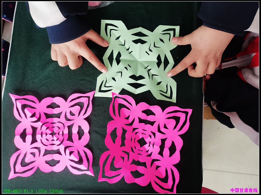 在老师的指导下,孩子们用灵巧的小手剪出了造型各异、形象逼真、色彩艳丽的窗花。一幅幅精致的作品洋溢着欢乐祥和的迎春气息,深受学生喜爱。孩子们为民间艺术感到惊叹,自己也乐于动手参与剪窗花活动,老师从旁辅导,孩子们怀着好奇心打开自己的作品,体验成功的喜悦。