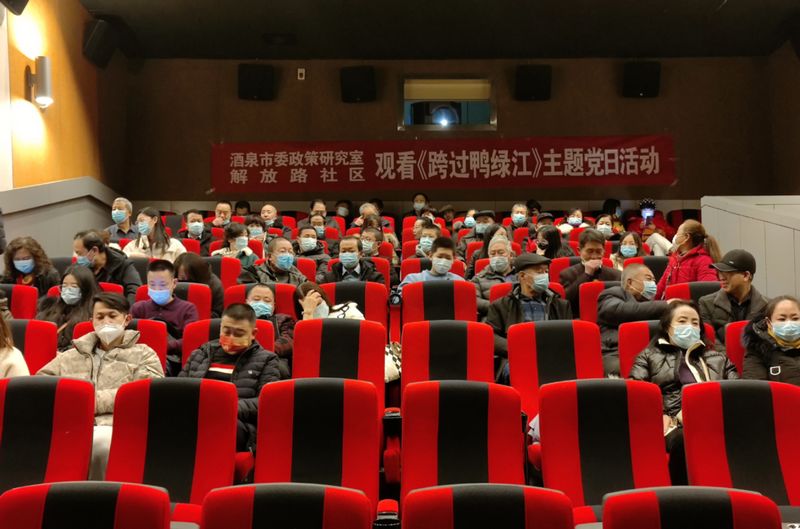1月10日,东南街街道解放路社区联合“五联双报到”单位市委政策研究室,组织各支部党员干部40余人次齐聚飞天影院,观看了庆祝建党100周年主题电影《跨过鸭绿江》。