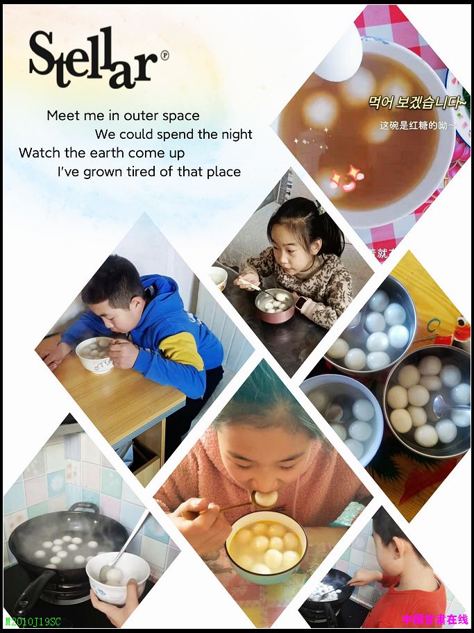 北方“滚元宵”,南方“包汤圆”。汤圆、元宵象征合家团圆,意味新的一年合家幸福、团团圆圆,所以正月十五元宵节必备。同学们和家长一起做汤圆、煮汤圆、品汤圆,分享团圆的味道,分享家庭欢乐。一家人一起吃元宵,感受到了浓浓的温情。