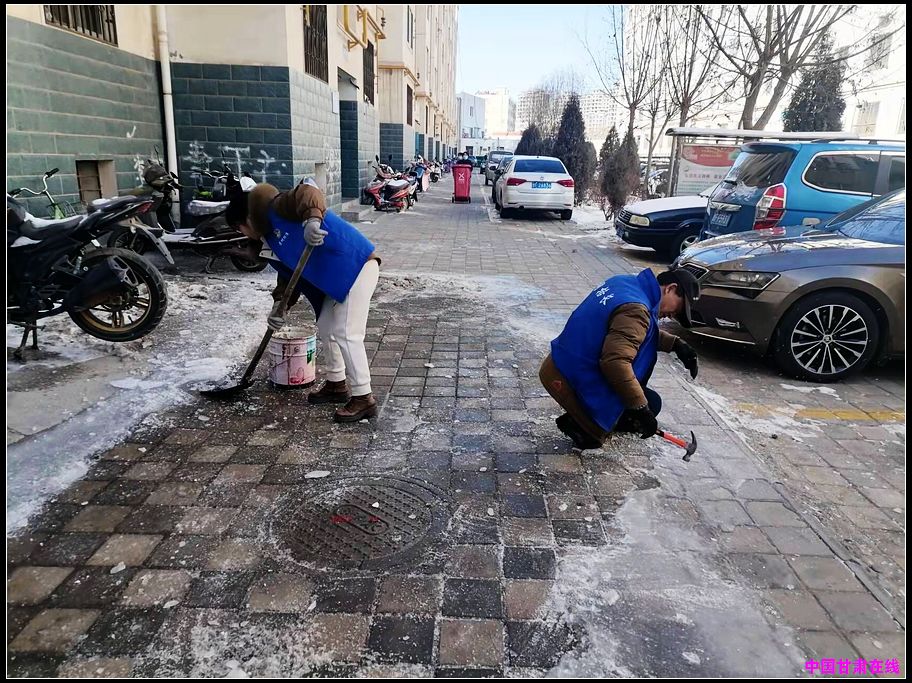 与此同时,网格长们与志愿者、居民手持铁锨、斧头、扫帚、融雪盐进行全面清理,经过近2个小时的连续作战,冰滩彻底清理完毕,并将清理出来的破碎冰块扫到小区下水井内。路面恢复了正常通行秩序,保障了居民群众的安全。