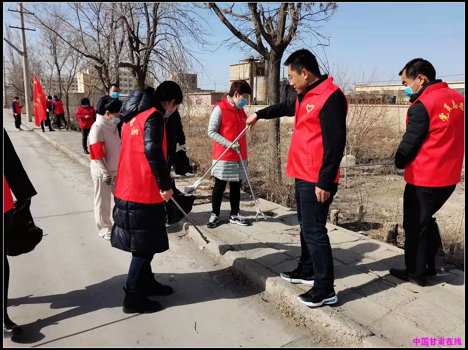 中国甘肃在线肃州讯 党旗迎风飘,志愿服务暖人心。酒泉市肃州区解放路社区党委紧紧围绕学习教育、议事决策和志愿服务三项任务,结合三月学雷锋志愿服务活动,组织所属5个党支部开展形式多样的志愿服务活动,促进各党支部党员以学促做、以知促行,让主题党日活动更加“有滋味”,让志愿服务活动更加“有温度”。