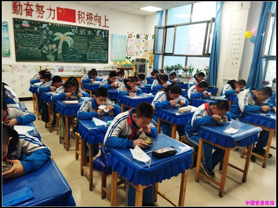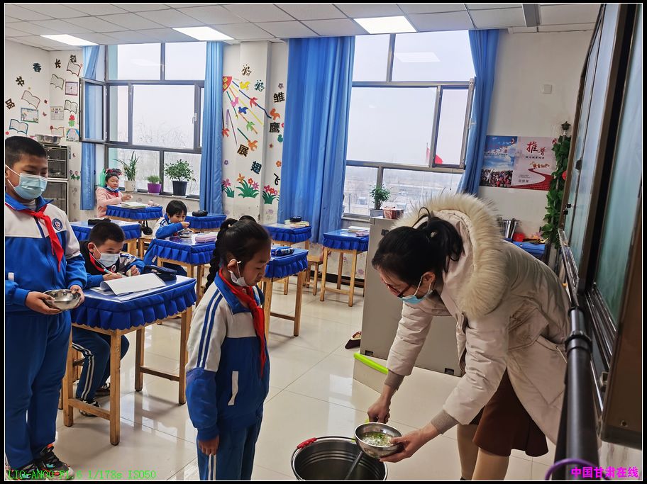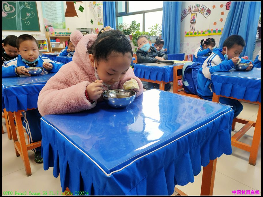 每天早晨八点钟,班主任去食堂为学生领取营养餐。孩子们吃着美味的牛肉汤,脸上洋溢着幸福的笑容。