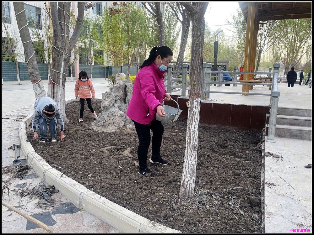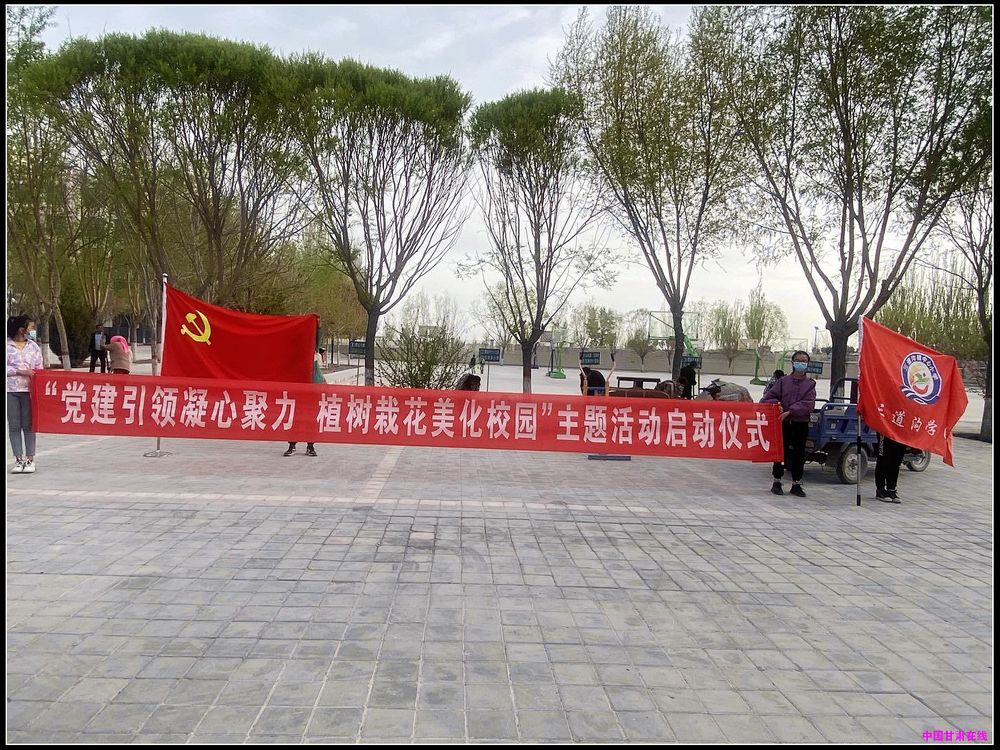 中国甘肃在线瓜州讯 为全面优化教学育人环境,大力加强学校校园文化建设,提升校园绿化水平,创建绿色花园式学校,2022年4月23日上午,瓜州县三道沟镇中心小学开展了以“党建引领凝心聚力,植树栽花美化校园”为主题的校园绿化活动。