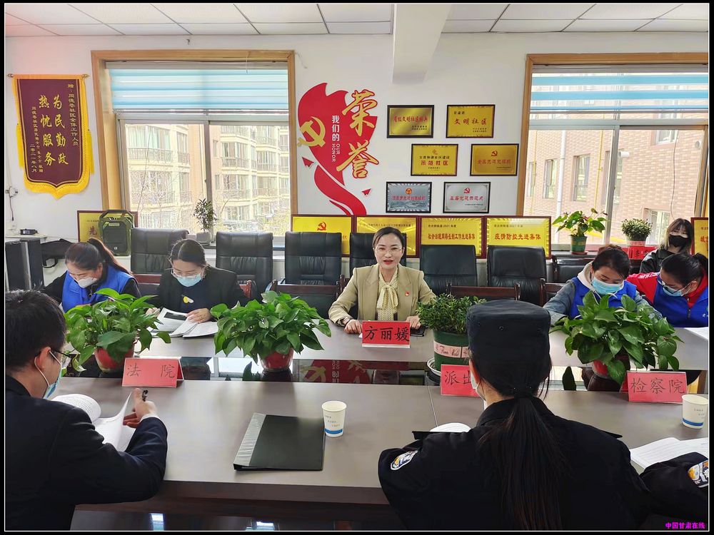中国甘肃在线肃州讯 为进一步落实好政法干警下基层、进网格开展工作,不断增强驻点干警责任意识,切实发挥职能作用,4月22日,肃州区东北街街道同德巷社区召开4月份政法干警联席会议暨“警网融合”“司法行政并网融合”推进会议。