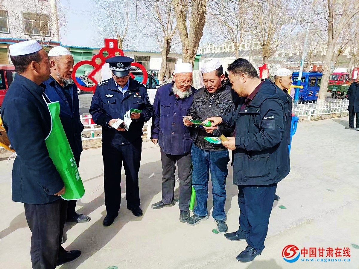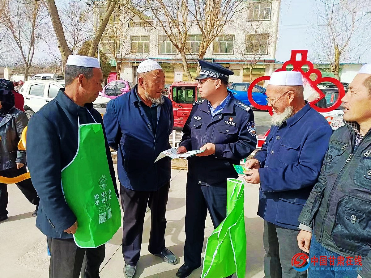 中国甘肃在线玉门讯(玉门市禁毒大队)为进一步宣传普及禁毒知识,提高群众禁毒知识知晓率,提升禁毒工作群众满意度,为辖区居民打好“毒品预防针”,3月16日上午,玉门市小金湾乡派出所民警、乡禁毒办工作人员在小金湾乡幼儿园门口举行以“国家禁毒 全民支持 打击毒贩 责无旁贷 ”为主题的禁毒宣传活动。