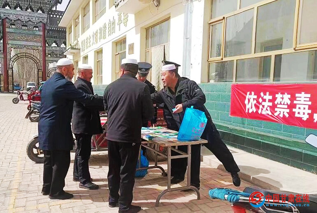 中国甘肃在线玉门讯 (玉门市禁毒大队)为进一步加大禁毒宣传力度,扩大毒品预防知识宣传覆盖面,增强宗教人士及信教群众防范毒品的意识和能力,创造安全和谐稳定的社会环境。3月17日,玉门市小金湾乡利用星期五主麻日在富源村一组清真寺开展“依法禁毒,创建和谐社会,远离毒品,享受阳光生活”为主题的禁毒宣传活动。