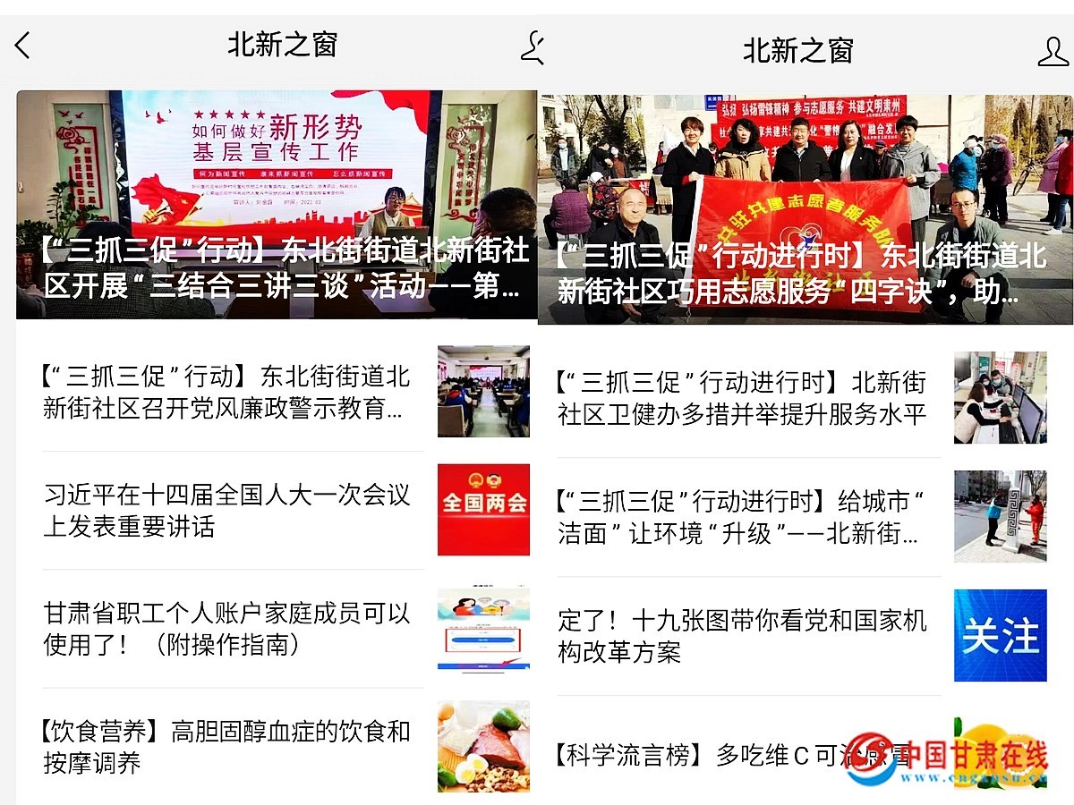 三、深耕“色度质感”,渲染立体式学习氛围,筑牢学用相长本色。坚持以学促干、学用结合主色调,有效结合大数据时代互联网学习阅读主流,在“北新之窗”微信公众号设立“三抓三促”进行时专栏,对社区开展“三抓三促”行动进行全方位动态宣传,及时推送党的最新理论、国家大政方针、惠民政策、文明实践等内容,营造浓厚学习氛围。以“小板凳议事会”为载体,通过“流动党课”进楼院,社会治理“有问有答”等方式搭建各类学习平台,在全面调动党员干部学习积极性的同时,有效提高了群众对“三抓三促”行动的知晓率和参与社区治理的积极性。至目前,社区“北新之窗”微信公众号共发布“三抓三促”行动动态、党的二十大精神理论学习、政策解读等各类信息150余篇,开展“小板凳议事会”、“流动党课”进楼院、“社会治理有问有答”活动10余场次,切实做到了学习入脑入心、推动工作落实落细。
