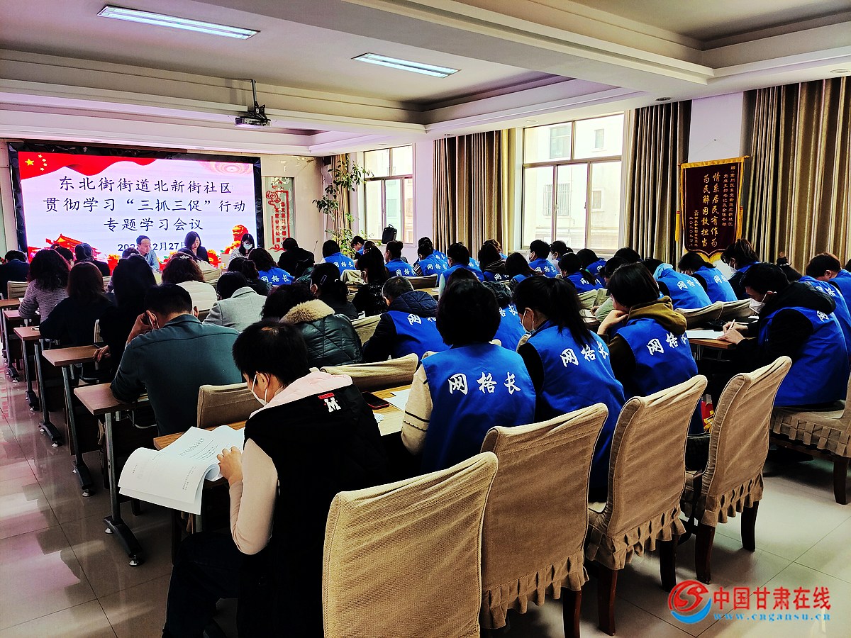 中国甘肃在线肃州讯 “三抓三促”行动开展以来,肃州区东北街道北新街社区坚持党建引领,紧扣“抓学习促提升”目标,结合社区实际,不断创新学习形式、丰富学习内容、发掘实践特色,聚力谋划学什么、推进怎么学、检验学得好“三道工序”,把“学”作为“三抓三促”行动首要任务,作为提升干部理论素养和业务能力的重要抓手,引导全体党员干部以学为先强本领、以干促学提素质、学以致用推落实、学用相长促发展。