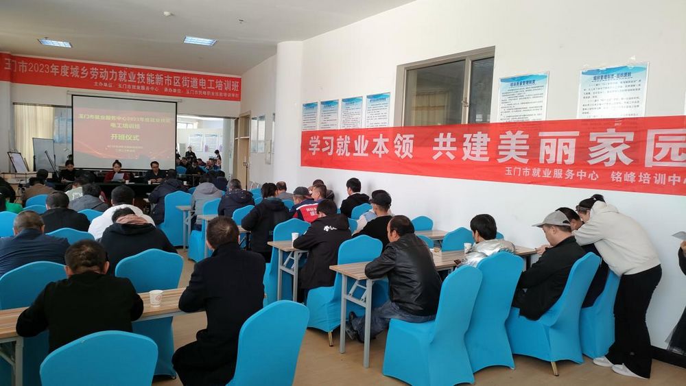 “今天我们的教学内容是电路的组成,大家要认真听,做好笔记,下节课我们将进行实际操作”,近日,铁人路社区会议室内气氛活跃,热闹非凡。此次参培学员共50人,培训对象为玉门市的失业劳动力。