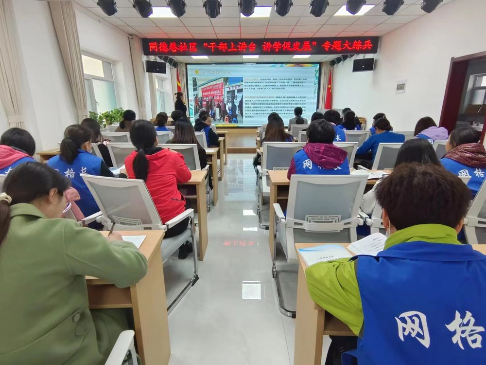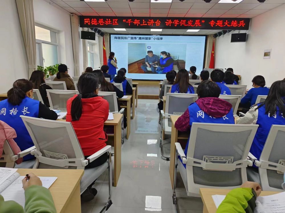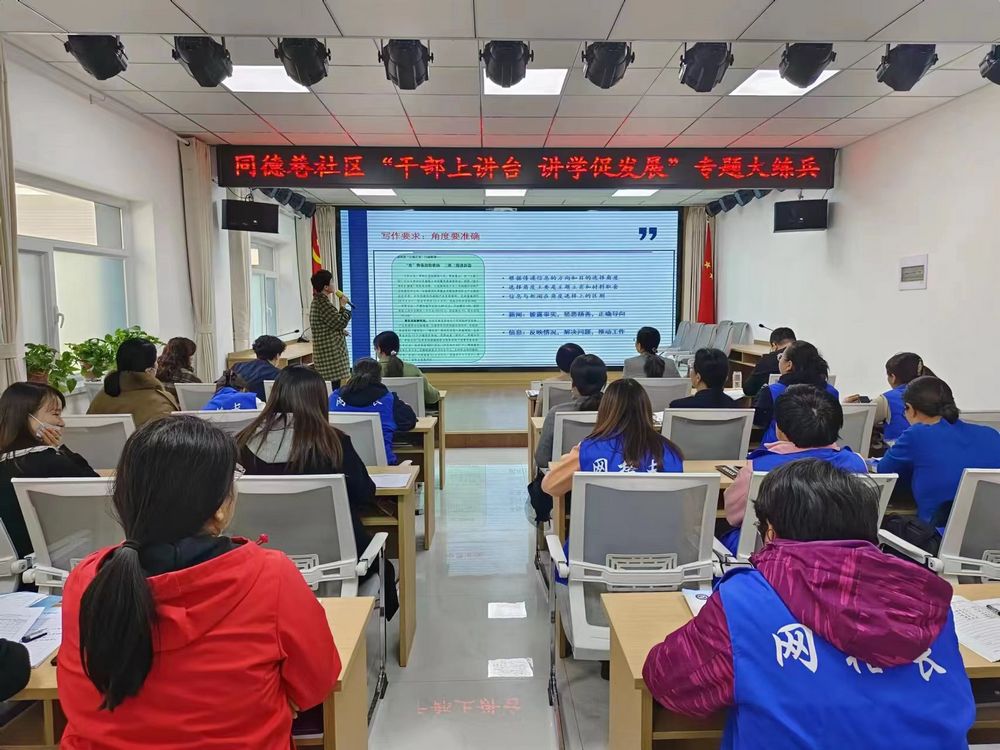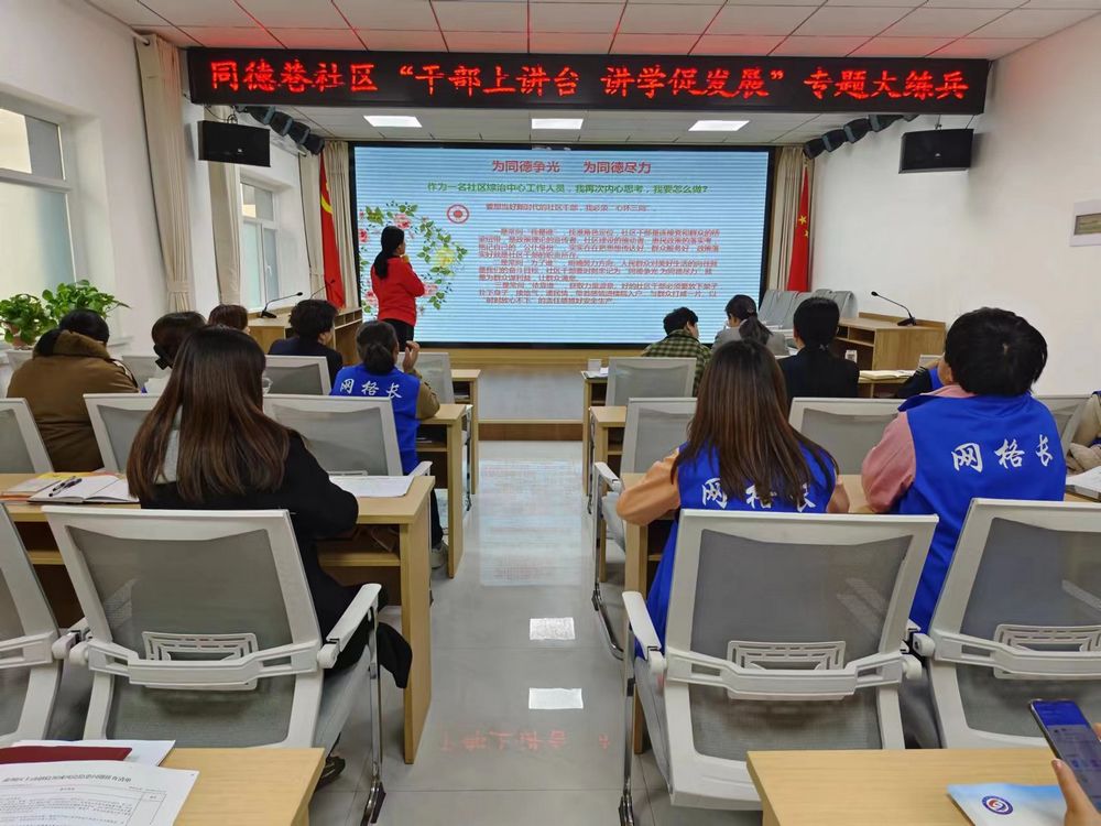 为深入学习贯彻党的二十大精神,认真落实好“三抓三促”行动要求,东北街街道同德巷社区党委认真研究制定了社区实施方案,并积极谋划,迅速行动,聚焦“定方向 强素质 抓学习”,扎实开展抓学习促提升行动——“干部上讲台,讲学促发展”专题大练兵活动。