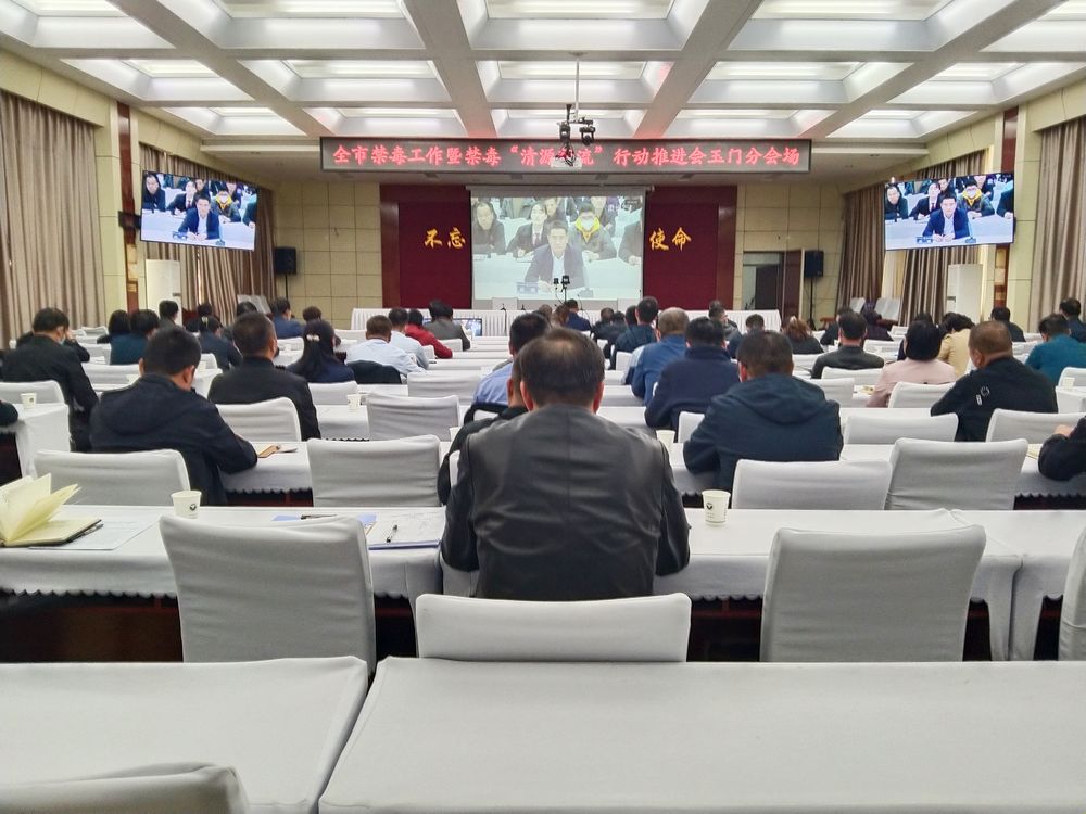 (玉门市禁毒大队)4月19日下午,酒泉市禁毒委召开全市禁毒工作暨禁毒“清源断流”行动推进会,深入贯彻落实习近平总书记关于禁毒工作的重要指示精神,结合省委“三抓三促”和“主动创稳”工作要求,总结成绩经验,分析形势问题,安排部署2023年禁毒工作。市禁毒委副主任、各园区、乡镇、街道办、各成员单位分管领导以及禁毒专干、公安局相关部门负责人、禁毒大队全体民辅警等80余人在我市分会场参加了会议。