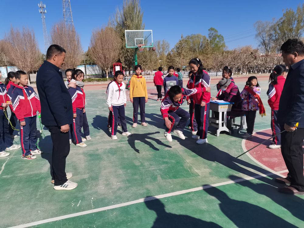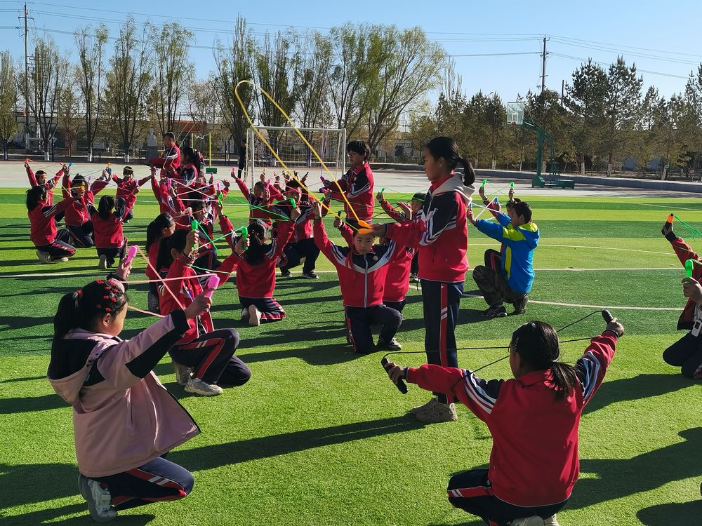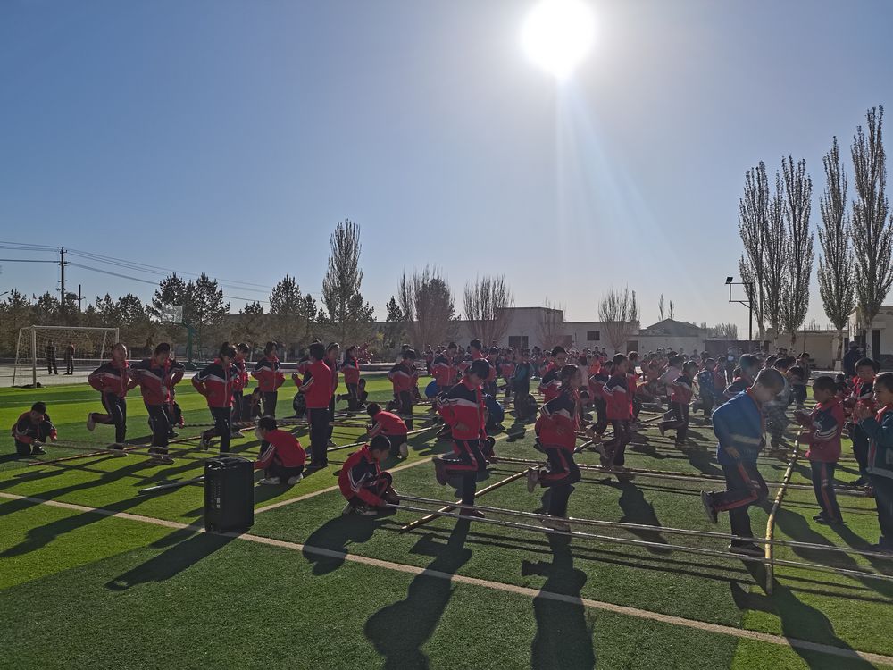 接下来进行的是学生课间竹竿舞、足球、跳绳特色活动展演。看,自信的笑容在他们脸上绽放,豪迈的激情在他们心中激荡!孩子们踏着轻快的节奏,动作娴熟、优美大方,他们展现出了活泼开朗、自信乐观、健康向上的精神风貌。