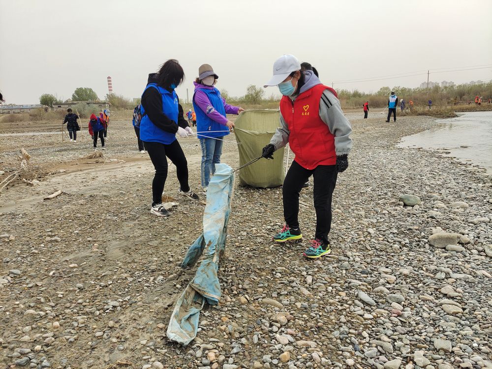 北大河河畔,大家认真清理河滩、河岸等区域垃圾杂物,以实际行动保护母亲河、爱护生态环境、践行绿色发展的理念。