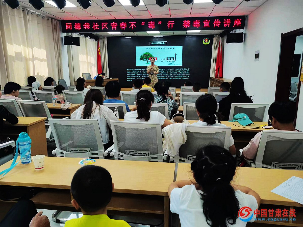中国甘肃在线肃州讯 “对毒品说不”。近日来,肃州区东北街道同德巷社区组织开展“禁毒宣传教育进楼院、进家庭”系列活动,大力弘扬法治正能量,广泛动员广大居民群众积极支持和参与毒品斗争。