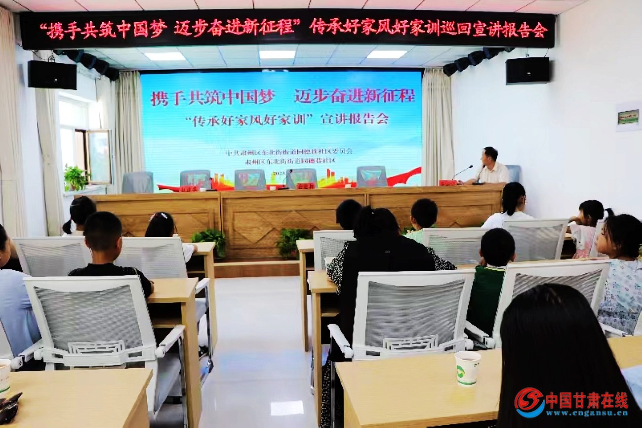 中国甘肃在线肃州讯 家风家训是一个家庭的立家之本、幸福之源,是良好社会风气的重要基石。家风作为一种无形的力量,在潜移默化地影响着人们为深入贯彻习近平总书记关于“注重家庭,注重家教,注重家风”的重要指示精神,进一步推进和践行社会主义核心价值观,大力弘扬中华民族传统美德,传承良好家风家训,传播向上向善的正能量,培育文明新风尚。近日,肃州区同德巷社区团总支组织辖区30个青少年家庭70余人参加 “弘扬好家风, 传承好家训”主题宣讲活动。