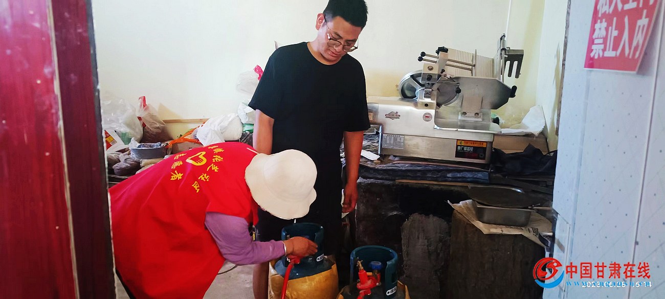 中国甘肃在线瓜州讯 为深刻汲取“6·21”银川富洋烧烤店燃气爆炸事故教训,进一步提高辖区小微企业及居民的燃气安全意识,预防燃气事故发生,确保辖区安全形势持续稳定。自6月22日起,渊泉镇张芝社区认真学习习近平总书记对宁夏银川市兴庆区富洋烧烤店燃气爆炸事故作出的重要指示精神,以防患于未“燃”为目标,深入辖区开展燃气安全排查“敲门行动”,织密辖区安全网。