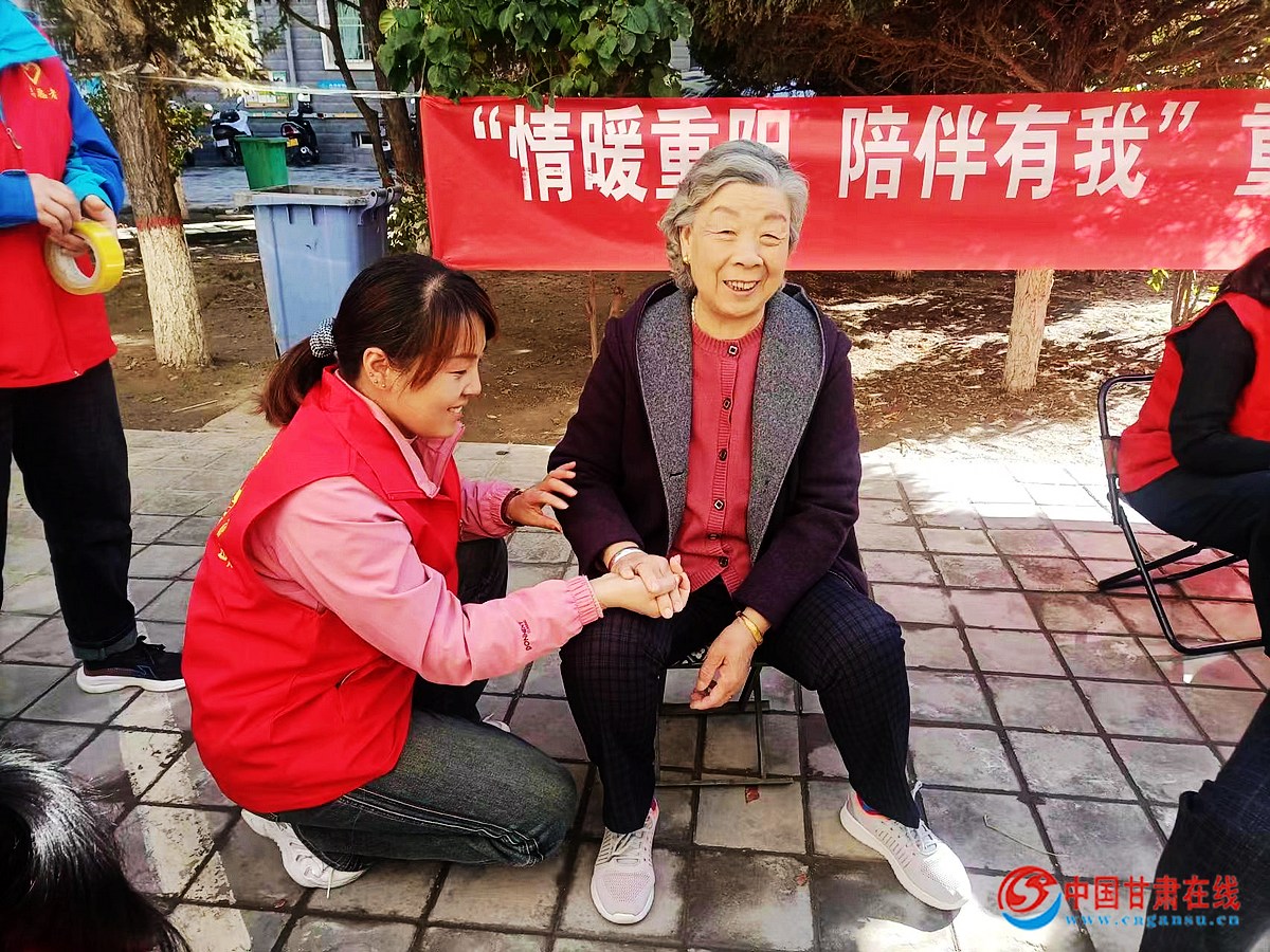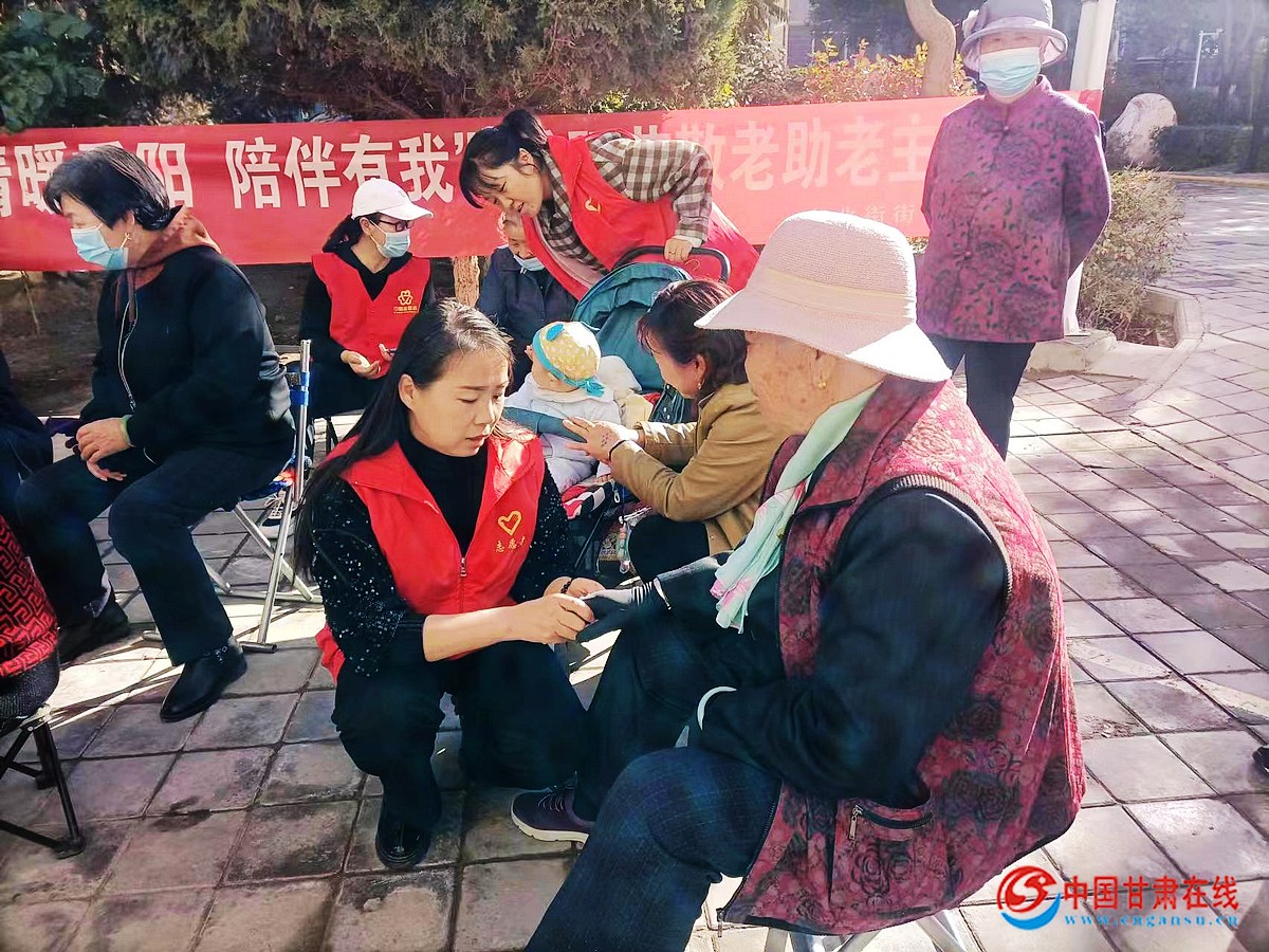 中国甘肃在线肃州讯 连日来,肃州区东北街街道同德巷社区新时代文明实践站组织各网格的文明实践服务队,开展“情暖重阳 陪伴有我”重阳节敬老助老主题实践活动。活动以“帮老人理一次发、给老人搞一次家庭卫生、陪老人赏一趟户外秋景、与老人唠一段暖心家常、为老人做一顿可口的饭菜”为主要内容。