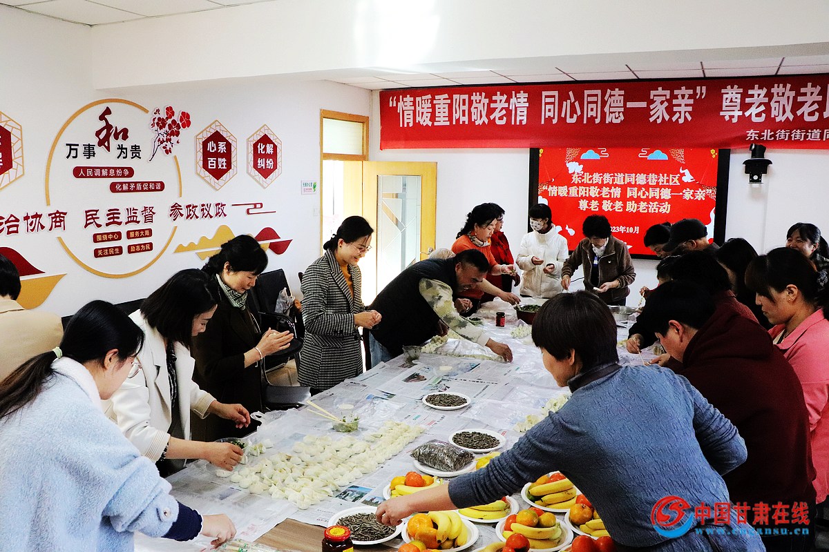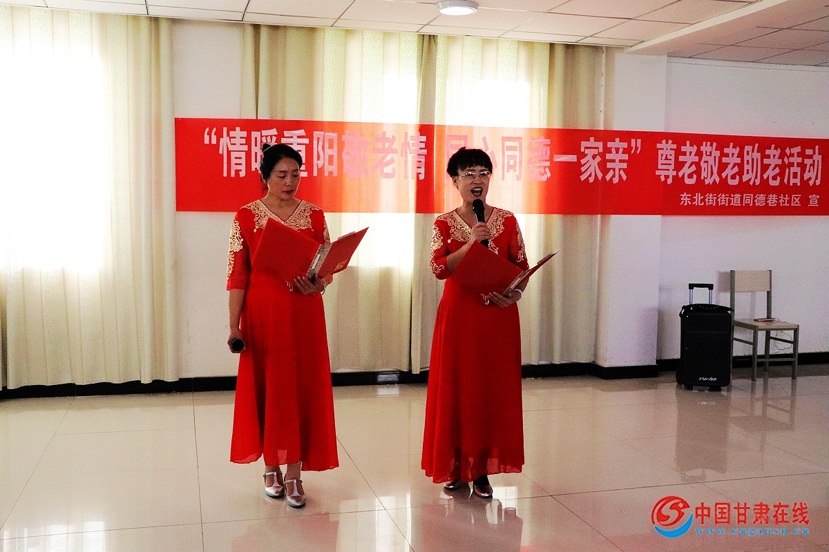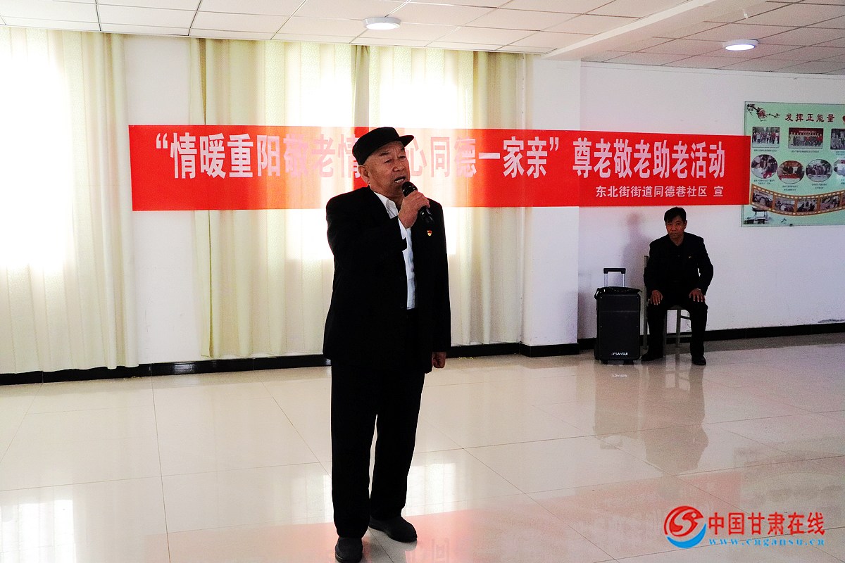 中国甘肃在线肃州讯 为进一步弘扬中华民族敬老、爱老、助老的传统美德,不断丰富社区老年人的精神文化生活,10月23日下午,肃州区东北街街道同德巷社区开展“情暖重阳敬老情 同心同德一家亲”尊老敬老助老主题活动。