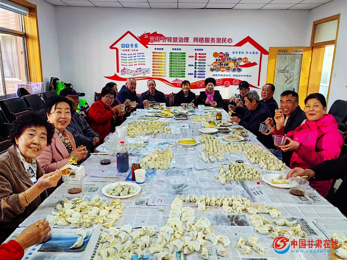 此时,在常青茗庭小区活动室,社区网格长们早早的就忙活了起来,为包饺子做准备,在欢声笑语中大家围在一起切菜、调馅、和面、拉家常。空气中不仅弥漫着满满的饺子香,更有浓浓的敬老情。不一会儿,一团团馅料、一张张面皮在网格长和工作人员的手中变成了形态各异、充满爱心与温情的饺子。社区主要领导和志愿者们还把刚出锅的饺子分别送到辖区老人家中,并为辖区年老党员送去米面油等慰问品,为他们送上了节日的问候。
