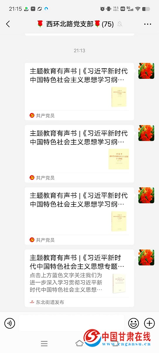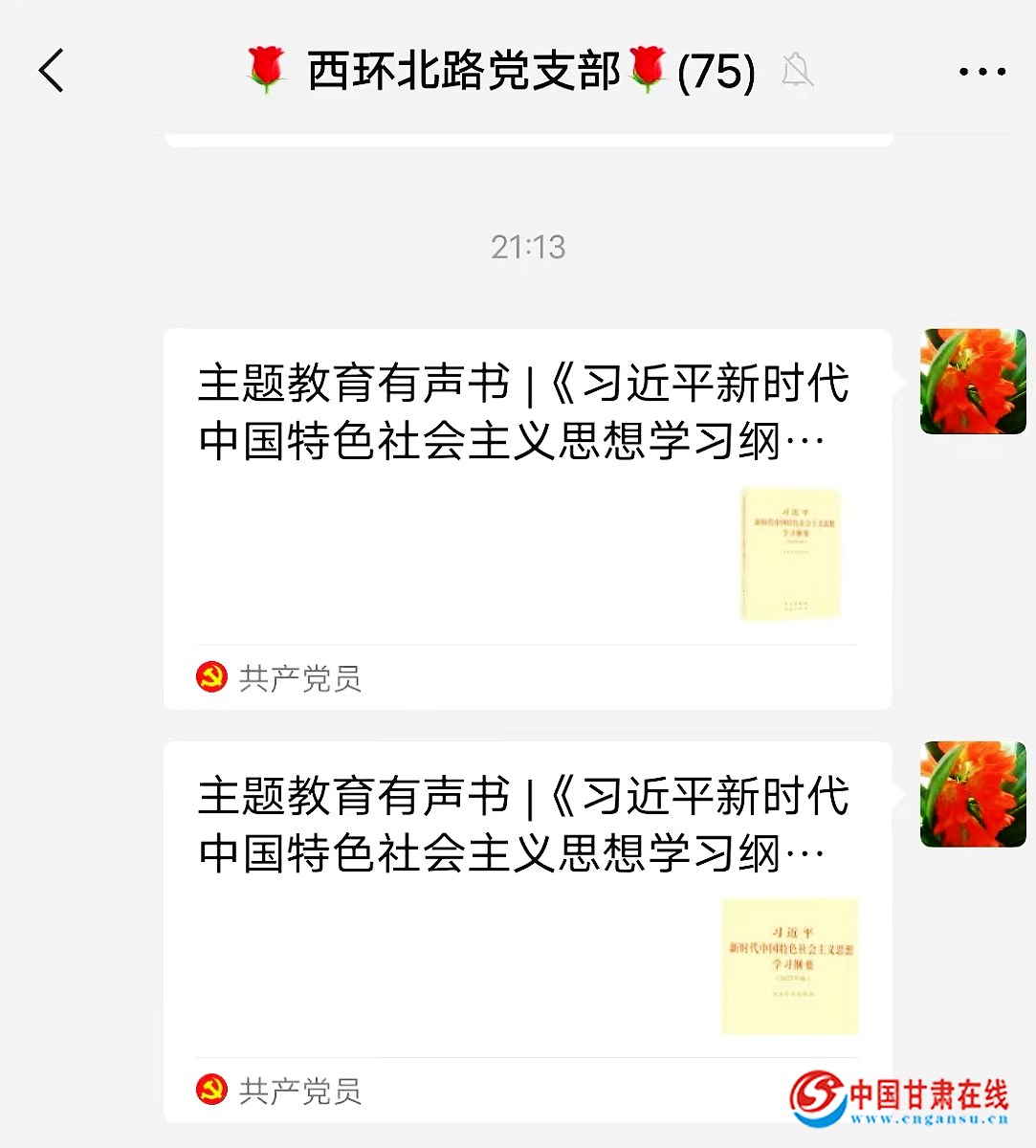 学,云端共学体新意。采取线上学习的机制,打造不打烊的云端课堂,充分利用公众号、微信群等平台,向党员们转发有声书籍《习近平著作选读》第一卷、《习近平新时代中国特色社会主义思想专题摘编》以及相关主题教育公众号文章。让党员及时掌握最新学习资料,全面提升党员学习的参与度与灵活度。