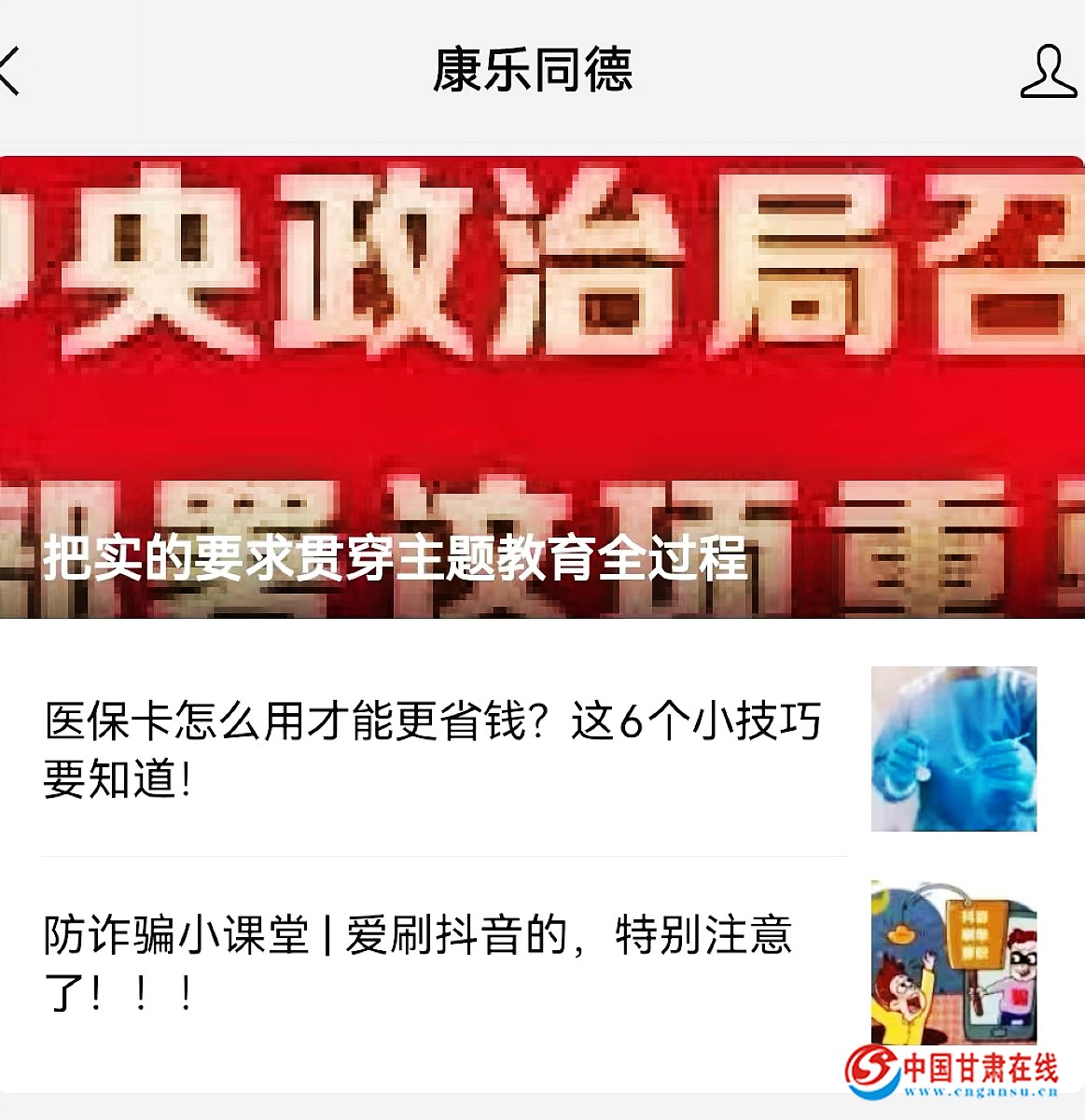 “线上线下”联动学。依托“康乐同德”公众号,及时更新主题教育动态。同时,利用“学习强国”“甘肃党建”“微信学习群”等平台,每天发送电子书籍,搭建“指尖课堂”,用好“掌上阵地”。创新“电子云端”学习服务平台,居民扫码关注查阅浏览,构建全方位线上线下学习平台,实现了专家解读“面对面”,指尖阅读“随时看”,让教育方式从“面对面”单一模式向“键对键、点对点”复合模式转变。