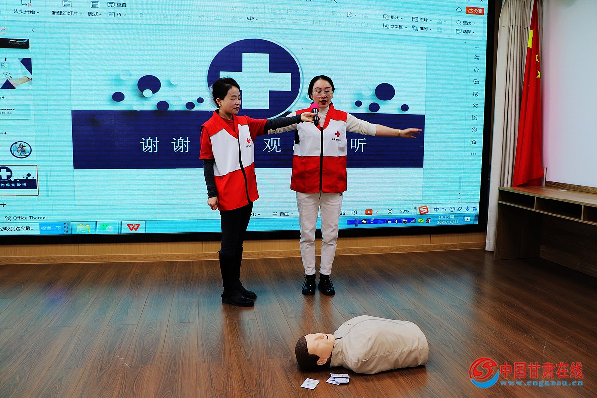 在活动现场,肃州区红十字应急救护师通过课件讲解、场景模拟、现场问答等形式,重点针对急性心肌梗死、脑出血、脑梗死、呼吸心跳骤停、糖尿病急症、支气管哮喘、癫痫等突发疾病,