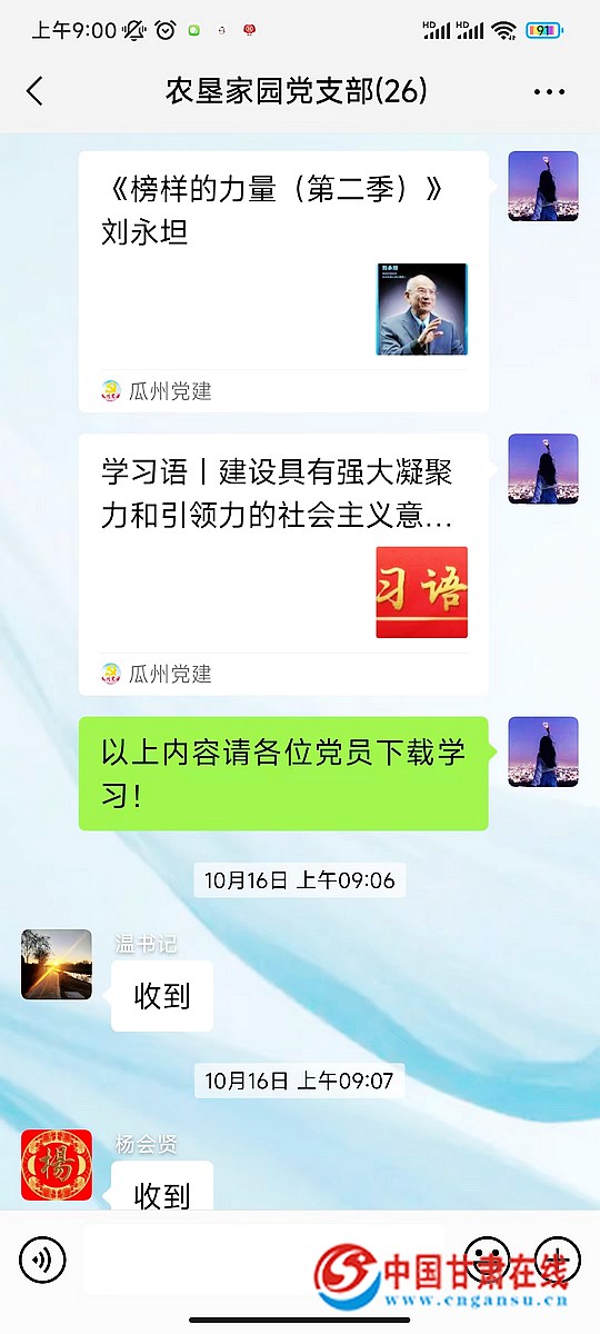 社区党委不断挖掘运用新媒体平台优势,积极发挥“互联网+”的作用,建立党支部微信群,将注册微信用户的党员全部纳入其中,每周推送理论学习和政策解读2-3条,帮助党员随时、随地“在线”学习党的创新理论。依托学习强国、共产党员网、甘肃党建APP、“党课开讲啦”等平台,让党员在平台上点一点就可以了解党的政策、国内外新闻、生活技巧等,拓宽党员获取信息渠道,“润物细无声”的将学习时间、地点拓展延伸至角角落落、分分秒秒。