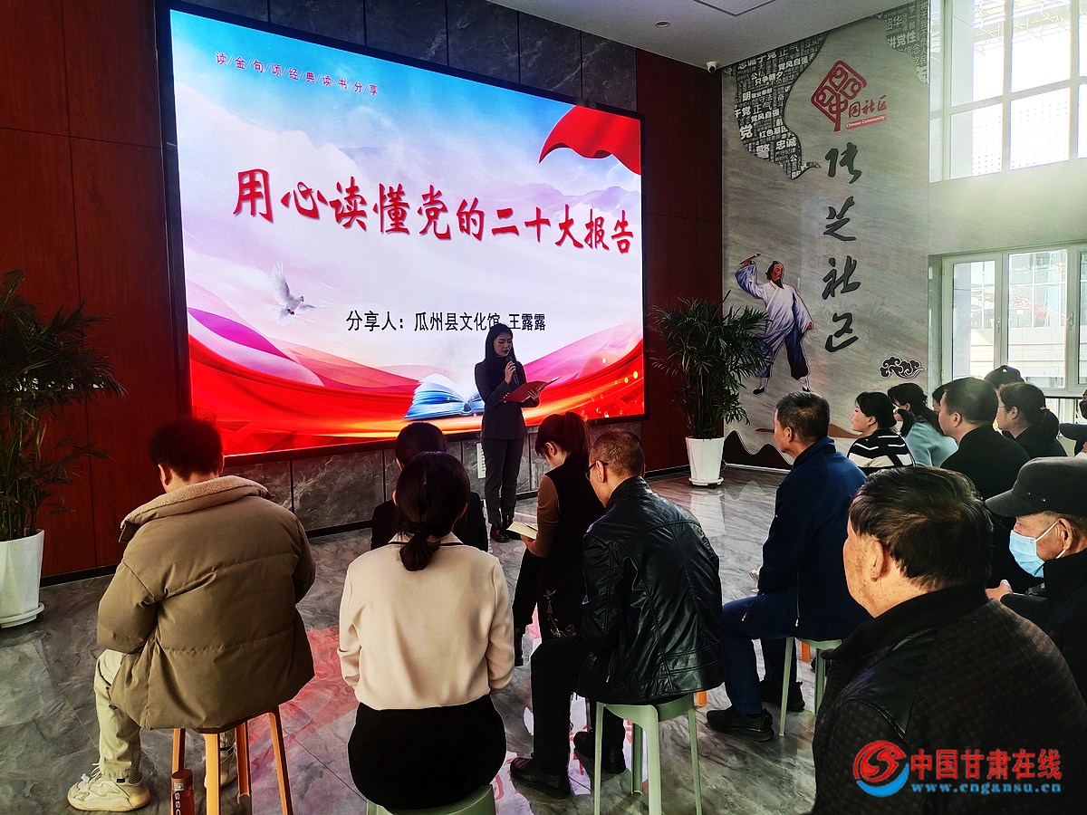中国甘肃在线瓜州讯 为深入学习贯彻党的二十大精神和习总书记新时代中国特色社会主义思想,认真贯彻习近平总书记系列重要讲话精神,瓜州县渊泉镇张芝社区妇联联合辖区共建单位开展“读金句、颂经典、讲感悟 ”读书分享活动,引导妇联干部从经典语录中感悟伟人精神,汲取奋进力量,进一步坚定听党话、跟党走的信念信心,以昂扬风貌在新时代新征程上展现新气象新作为。