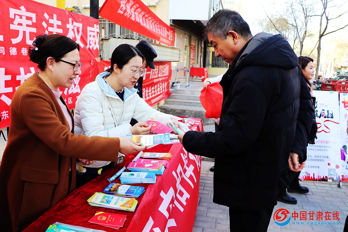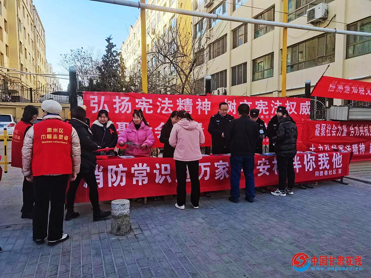 中国甘肃在线肃州讯 2023年12月4日是第十个国家宪法日,肃州区东北街街道同德巷社区联合西北街司法所和西关派出所,开展了以“弘扬宪法精神、树立宪法权威”为主题的集中宣传活动。