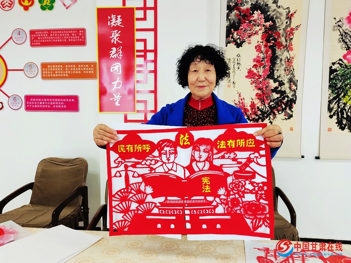 “秀剪纸+晒书法”,让普法宣传“活”起来。为传承和弘扬中华优秀传统文化,将法治元素融入非遗文化元素,借助剪纸和书法展现法治亮点,以群众喜闻乐见的方式增强普法宣传效果。榆林社区邀请民间艺术家何淑兰和书法爱好者金发贤,现场制作和书写主题鲜明的剪纸、书法作品,把独创的剪纸和书法作品将法治元素完美融合,不仅弘扬了我国传统文化剪纸和书法艺术,传播了法治精神,也是用一种普法“新说法”,让群众既能领略到剪纸和书法的艺术魅力,更让法治元素走进人们心里。