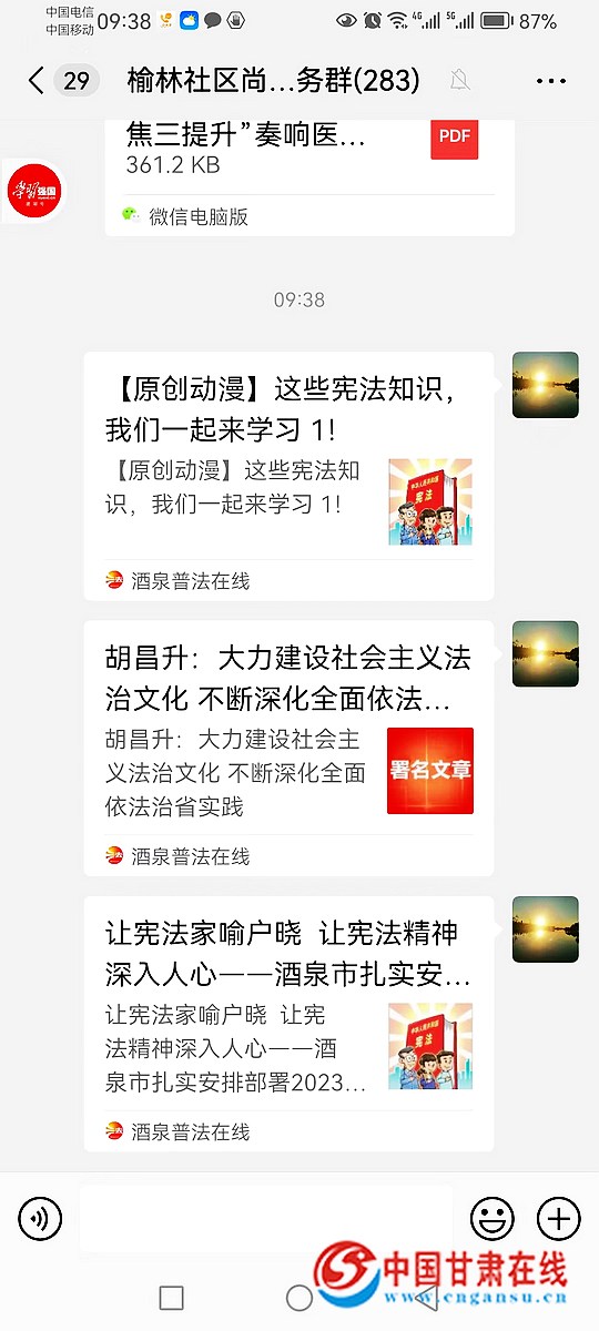 中国甘肃在线瓜州讯 为进一步弘扬法治精神,传递法治力量,提升群众的法治意识和法治素养,营造尊法学法守法用法的浓厚法治氛围,瓜州县渊泉镇榆林社区采用主题活动和特色活动相结合的方式,开展了普法宣传活动,通过多种形式宣传普及法律知识,让法治宣传走到群众身边、走进群众心里。