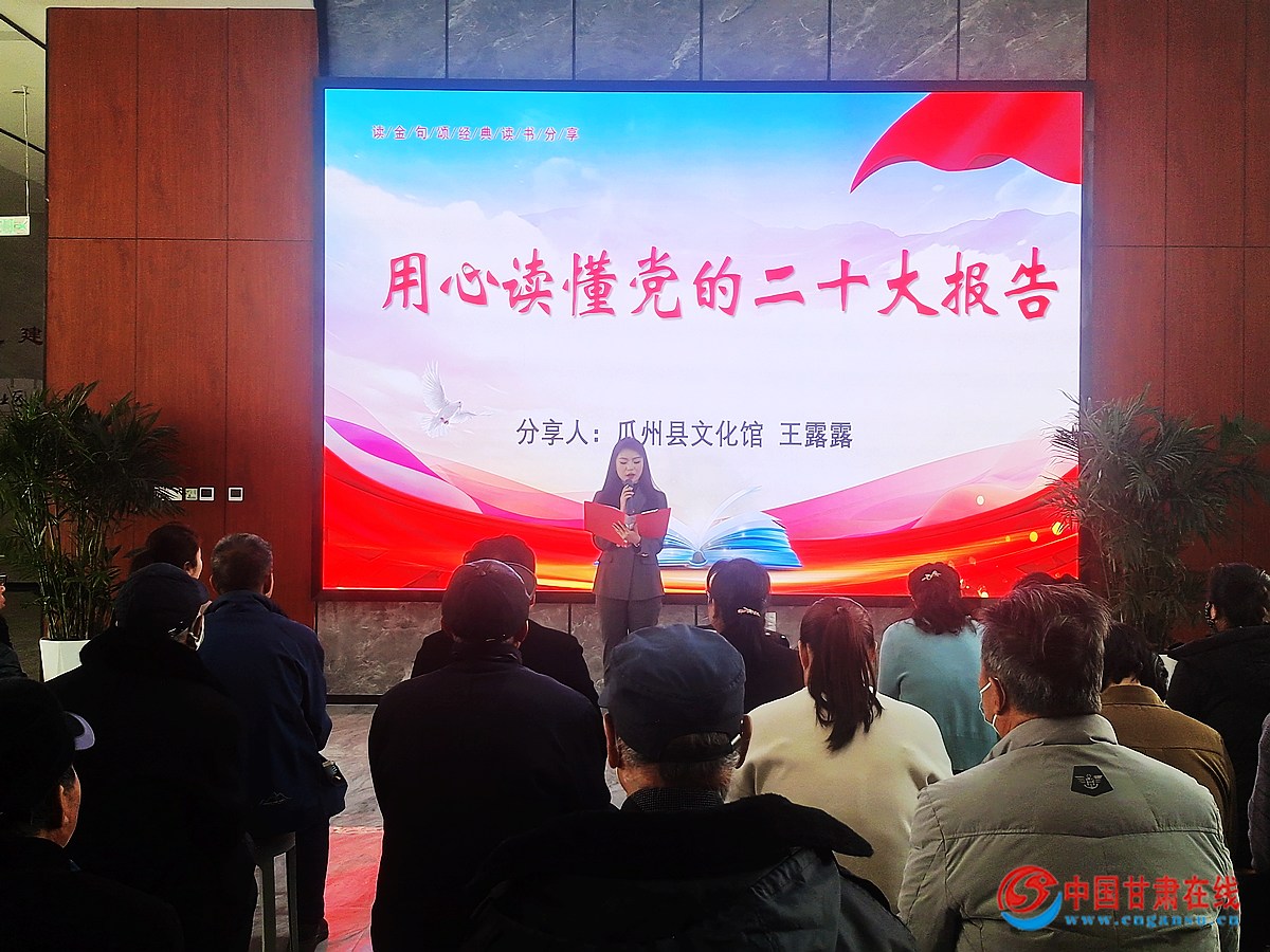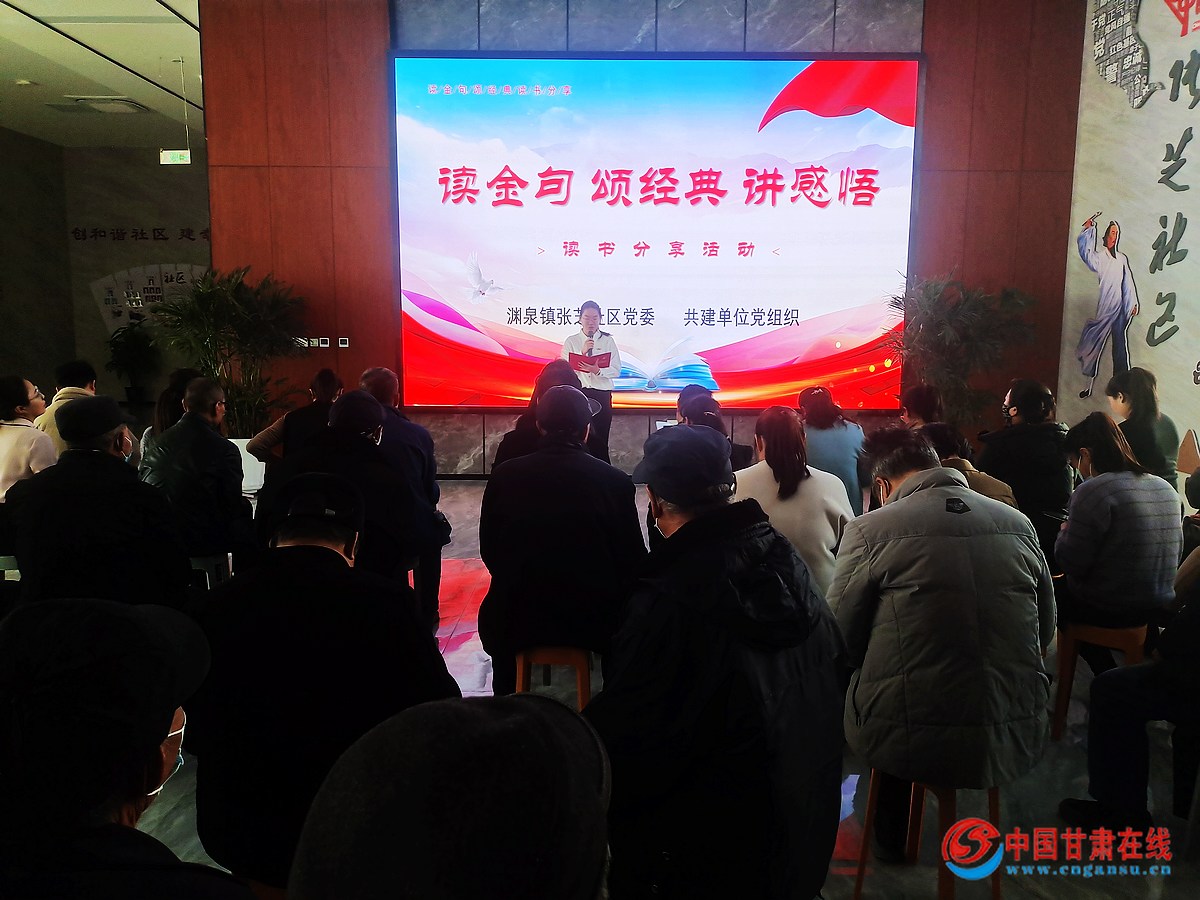 中国甘肃在线瓜州讯 为深入学习贯彻习总书记新时代中国特色社会主义思想,推动学习教育走深走实走心。近期,渊泉镇张芝社区联合驻区单位党组织开展了“读金句、颂经典、讲感悟 ”读书分享活动,吸引了辖区16个单位党组织和80多名党员参加。