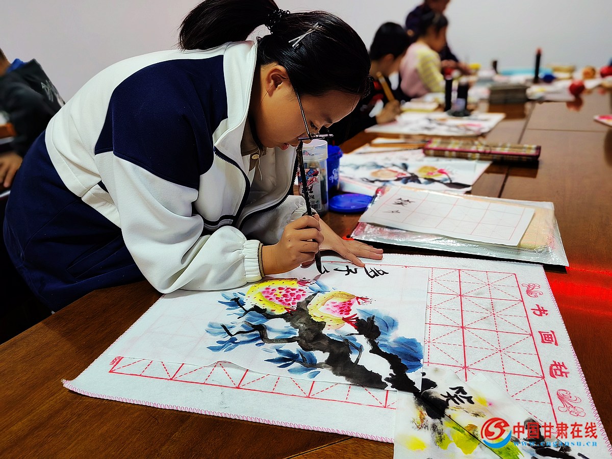 中国甘肃在线瓜州讯 为进一步践行社会主义核心价值观,大力弘扬爱国主义精神,不断深化民族团结进步教育、铸牢中华民族共同体意识,瓜州县渊泉镇祁连社区新时代文明实践站开展“石榴花开·同心筑梦”丹青墨染 魅力国粹国画培训公益课堂,通过绘画民族团结主题作品,引导各族青少年牢固树立“中华民族一家亲”观念。