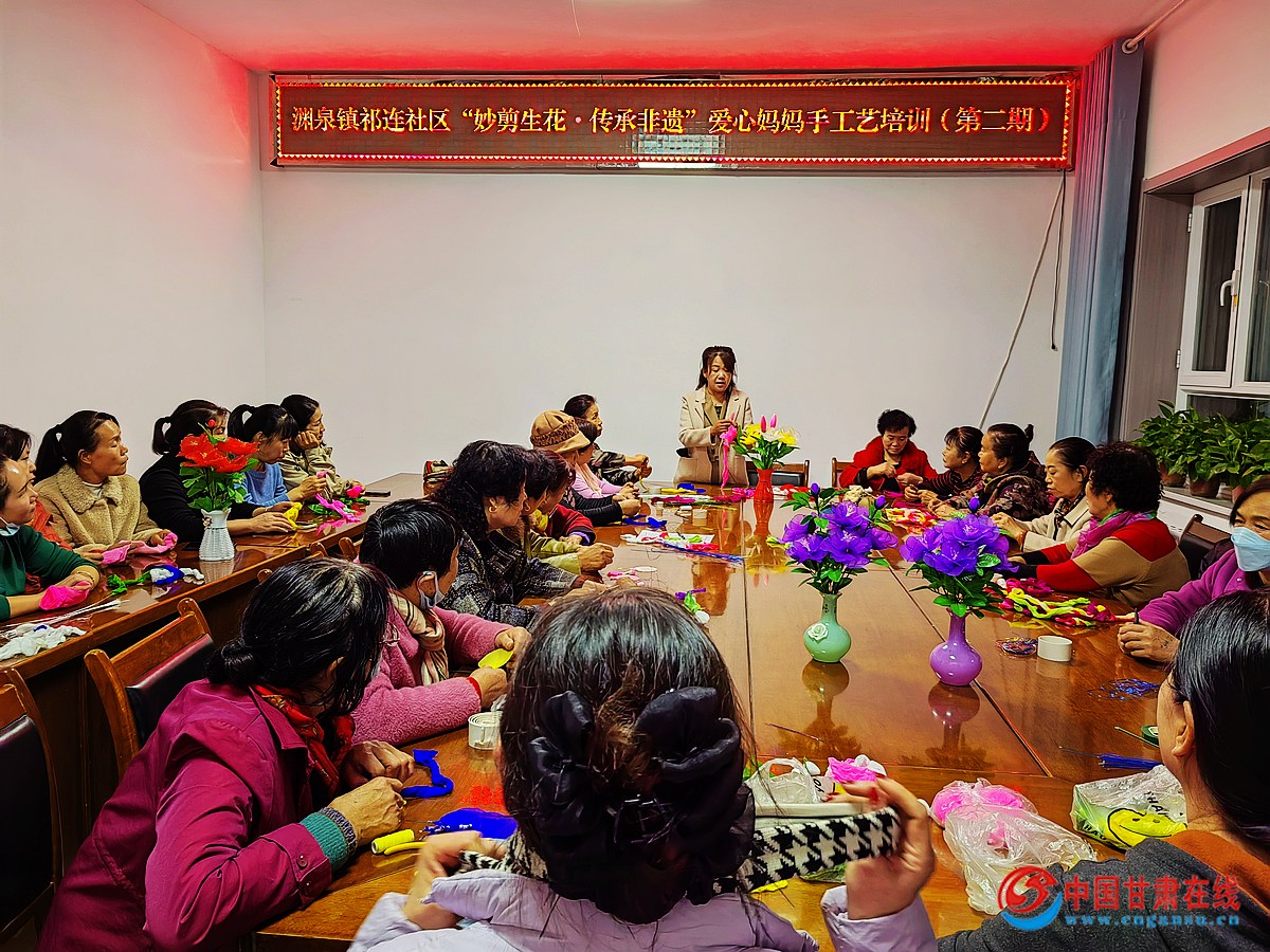 中国甘肃在线瓜州讯 不负春光,织花拾趣,一把剪刀,一把铁丝,一团扎线,颜色各异的丝网,剪起线落,层层交叉,近日,瓜州县渊泉镇祁连社区新时代文明实践站开展“妙剪生花·传承非遗”手工丝网花DIY制作活动。