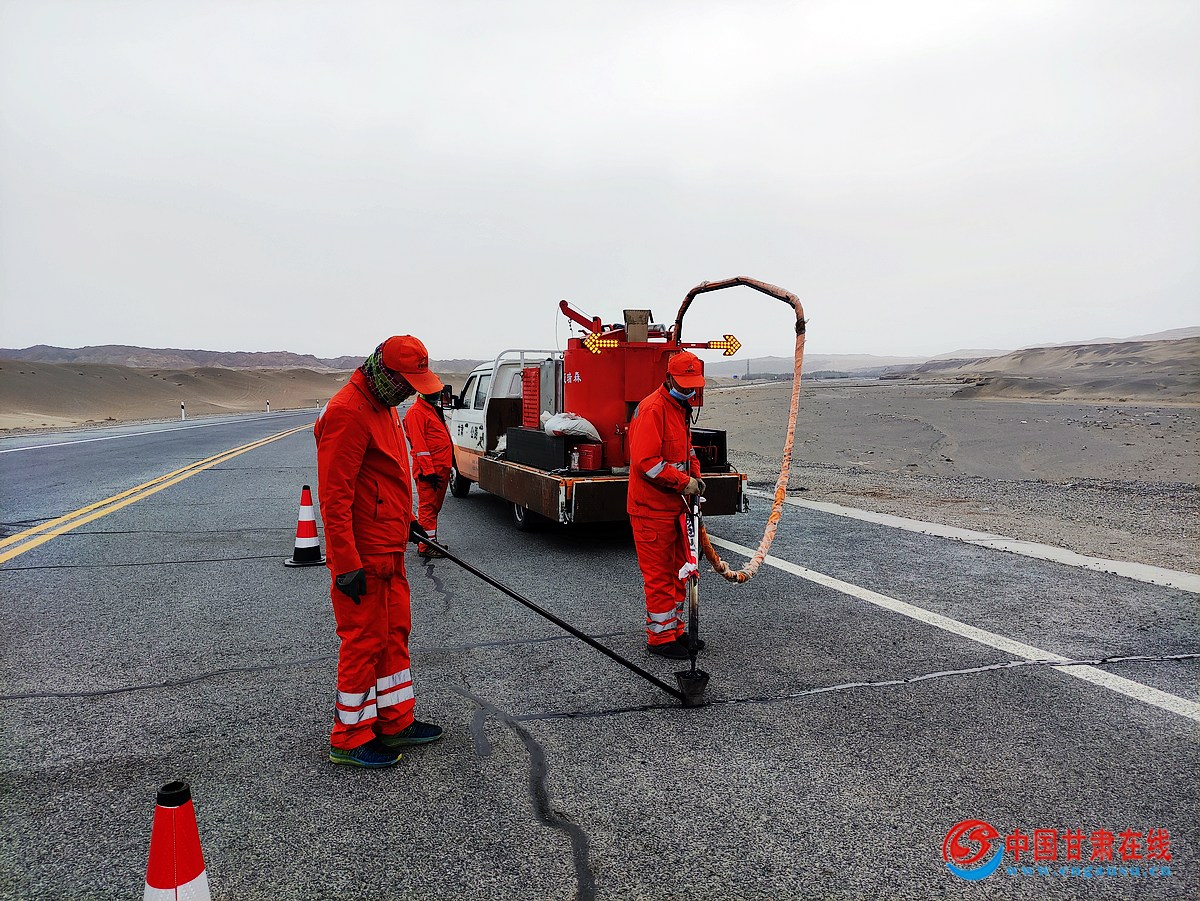 “把脉问诊”优化灌缝方案。根据前期公路路况摸底调查数据及敦煌春季辖养路段车流情况,抢抓路面灌缝作业黄金期,倒排工期,优化灌缝作业路线、人员安排和作业现场安全管理,有效加快养护灌缝速度,切实提高作业执行力和工作效率。