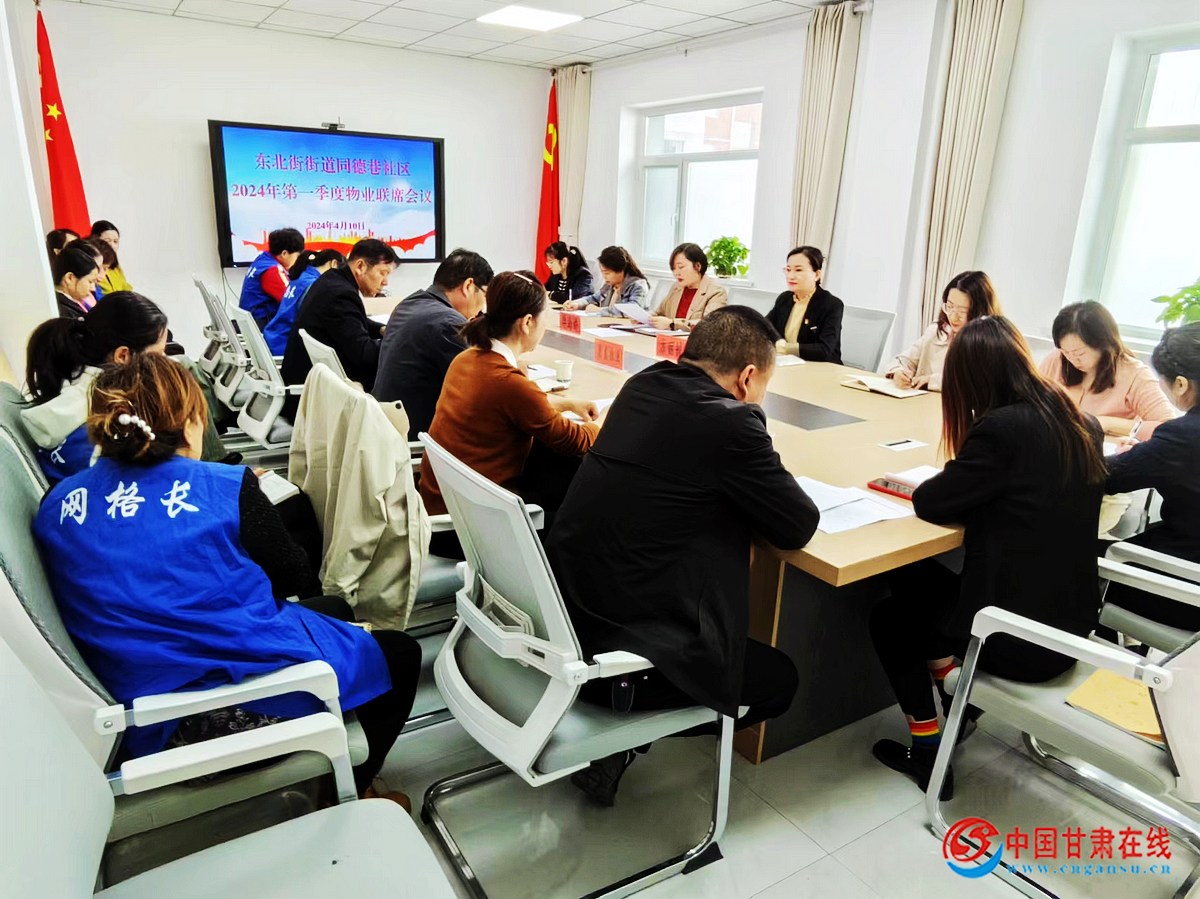 中国甘肃在线肃州讯 为进一步提升社区治理水平,增强社区与物业之间的联动,更好服务居民群众,4月10日上午,肃州区东北街街道同德巷社区召开2024年度第一季度物业联席会,社区领导班子成员、各办公室主任、辖区4家物业企业负责人、网格长参加会议。