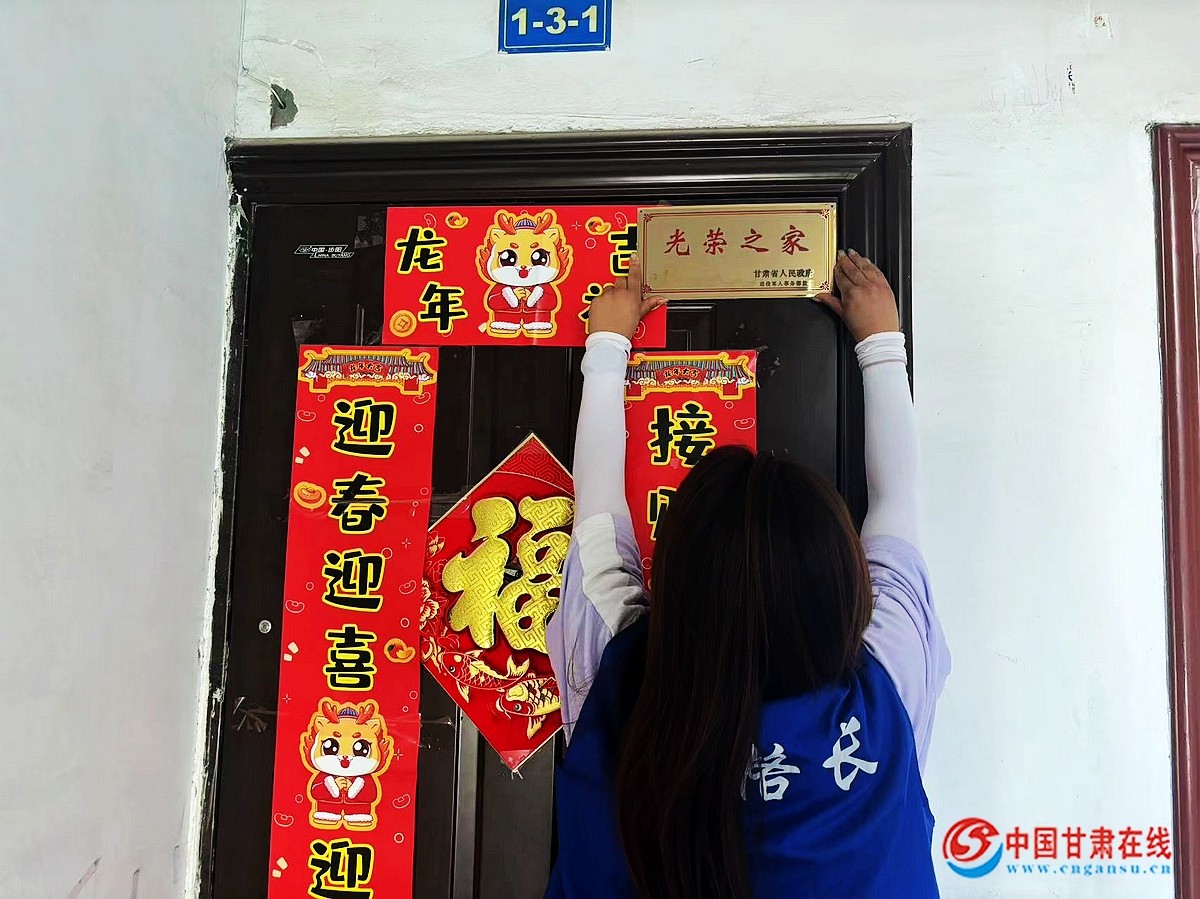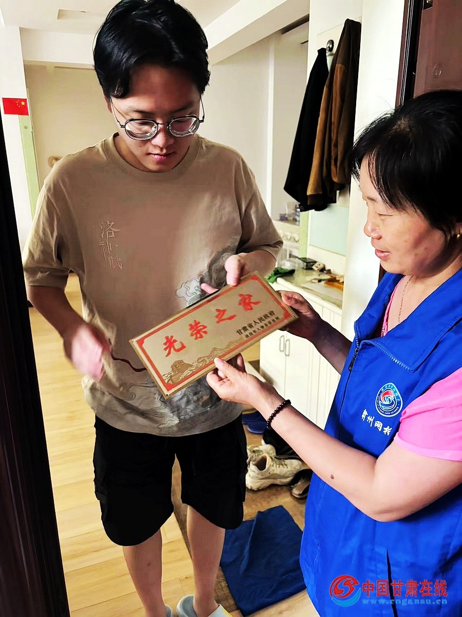 中国甘肃在线肃州讯 为进一步弘扬拥军优属光荣传统,营造爱国拥军、尊崇军人的浓厚氛围,切实提升军人军属的荣誉感。近日,肃州区东北街街道同德巷社区退役军人服务站上门为退役军人家庭悬挂光荣牌。