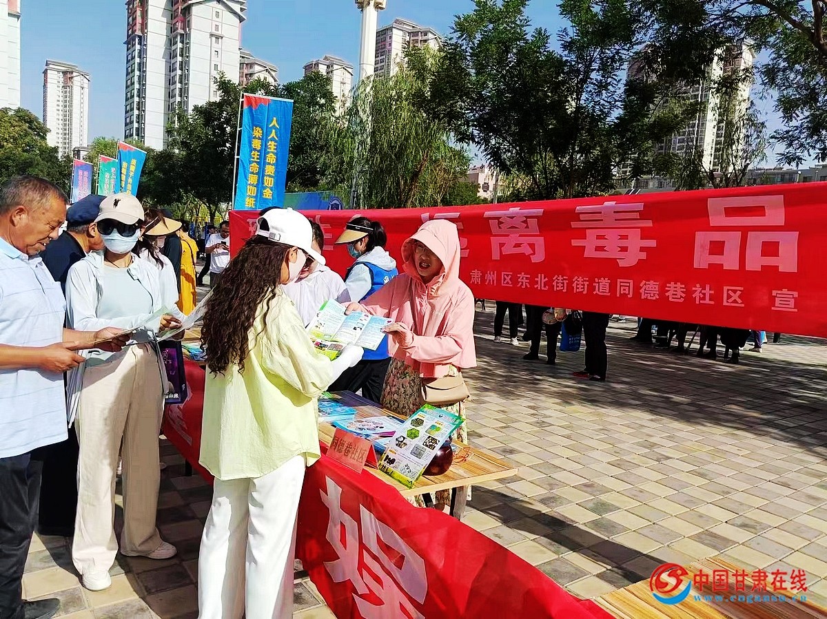 中国甘肃在线肃州讯 为进一步增强全民禁毒意识,提高公民自觉抵御毒品的能力,预防和减少毒品违法犯罪活动,保护公民身心健康、促进社会和谐稳定。6月26日上午,同德巷社区开展“6·26国际禁毒日”集中宣传活动。