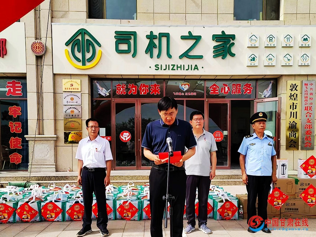 中国甘肃在线敦煌讯 “感谢货运行业工会组织,让我们拥有了坚强的后盾,能够在夜以继日的工作中享受周到体贴的服务,找到家的感觉。”货车司机夏涛在活动现场说道。