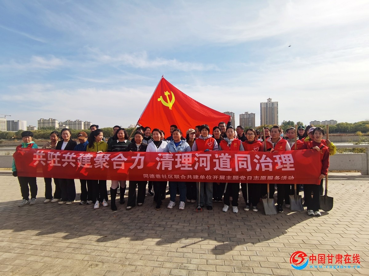 中国甘肃在线肃州讯 为进一步提升辖区河道环境卫生质量,营造更加干净、整洁的河道环境,10月15日下午,肃州区东北街街道同德巷社区联合辖区共驻共建单位市委老干部局、市供销社、区市场监督管理局、区残联开展“共驻共建聚合力 清理河道同治理”志愿服务活动,共计50余人参加。