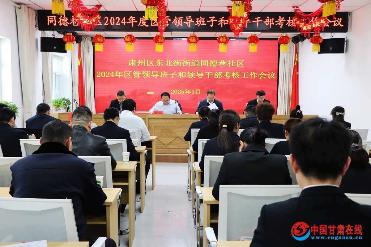中国甘肃在线肃州讯 1月14日下午,肃州区区委第八考核组对肃州区东北街街道同德巷社区领导班子和领导干部、同德巷社区2024年目标责任书完成情况等进行了全面的考核。区人大常委会党组成员、副主任、三级调研员石洲同志参加考核,同德巷社区领导班子成员、东北街街道包抓社区领导、社区党委委员、社区党代表、社区人大代表、社区“大党委”委员、各楼院党支部书记、部分党员代表和居民代表以及社区全体工作人员共40余人参加会议。